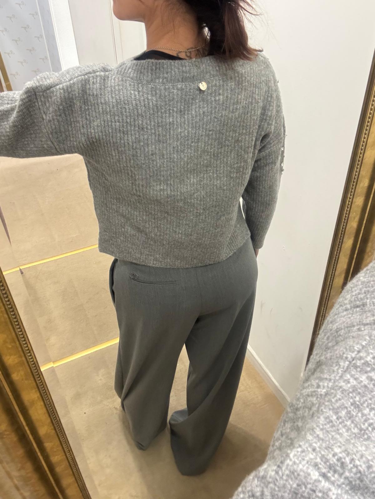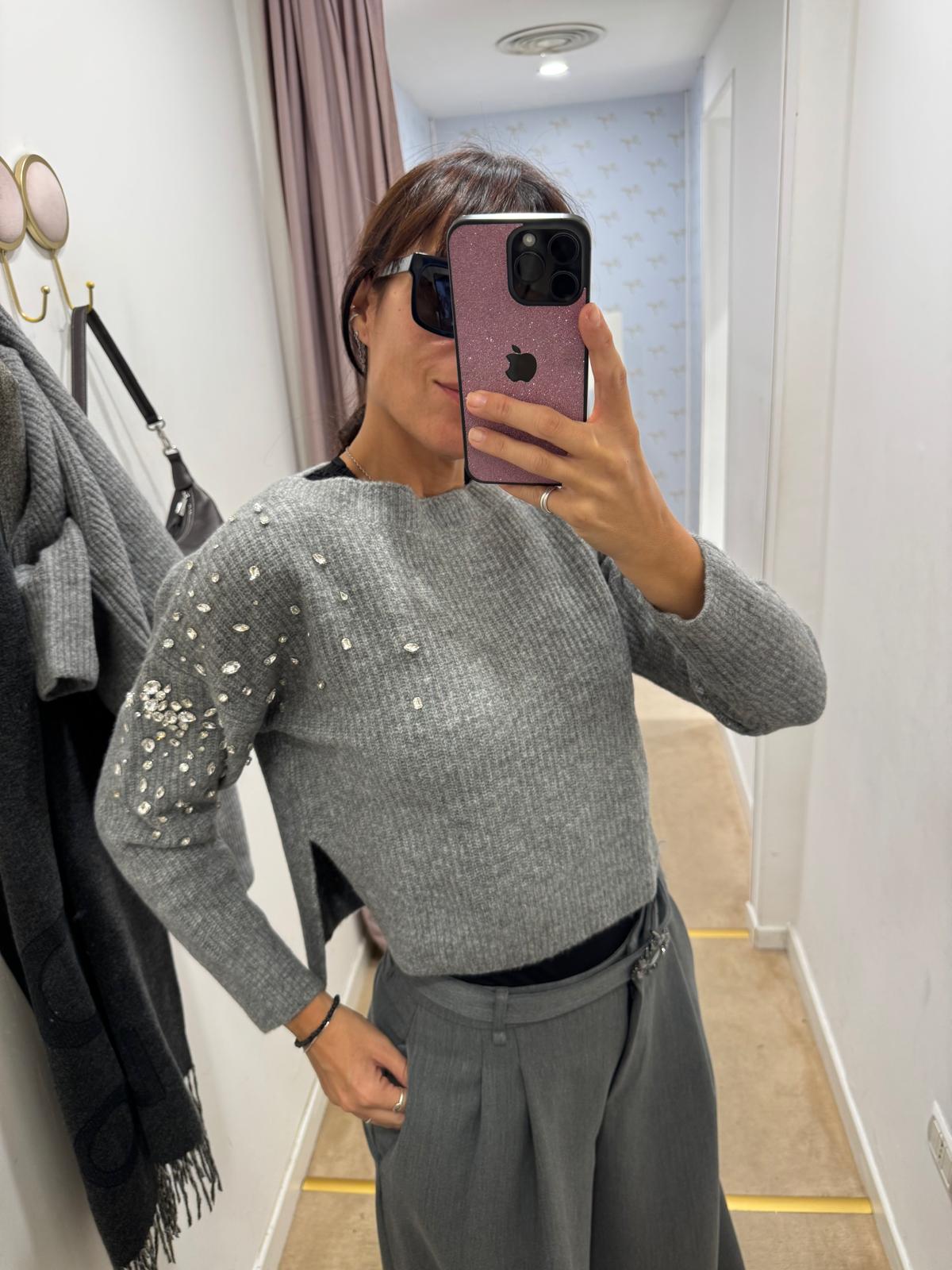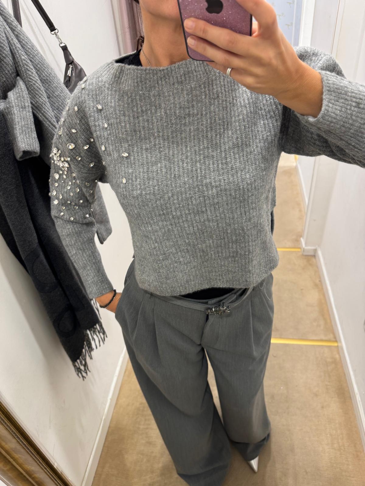 LIUJO GRAUER WOLLPULLOVER MIT STRASSSTEINEN