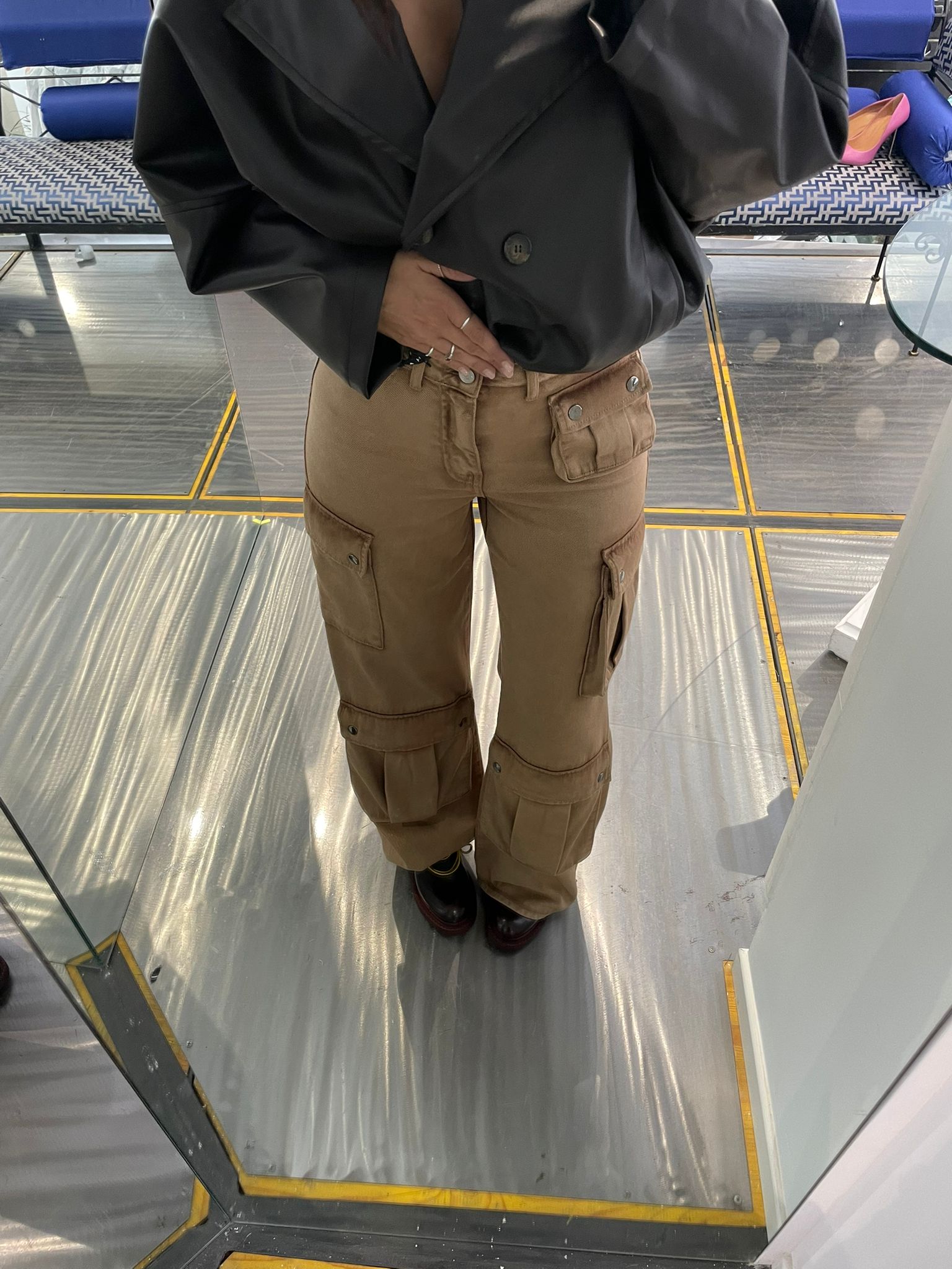 Reißverschluss und Knopfverschluss, Gürtelschlaufen und Taschen.