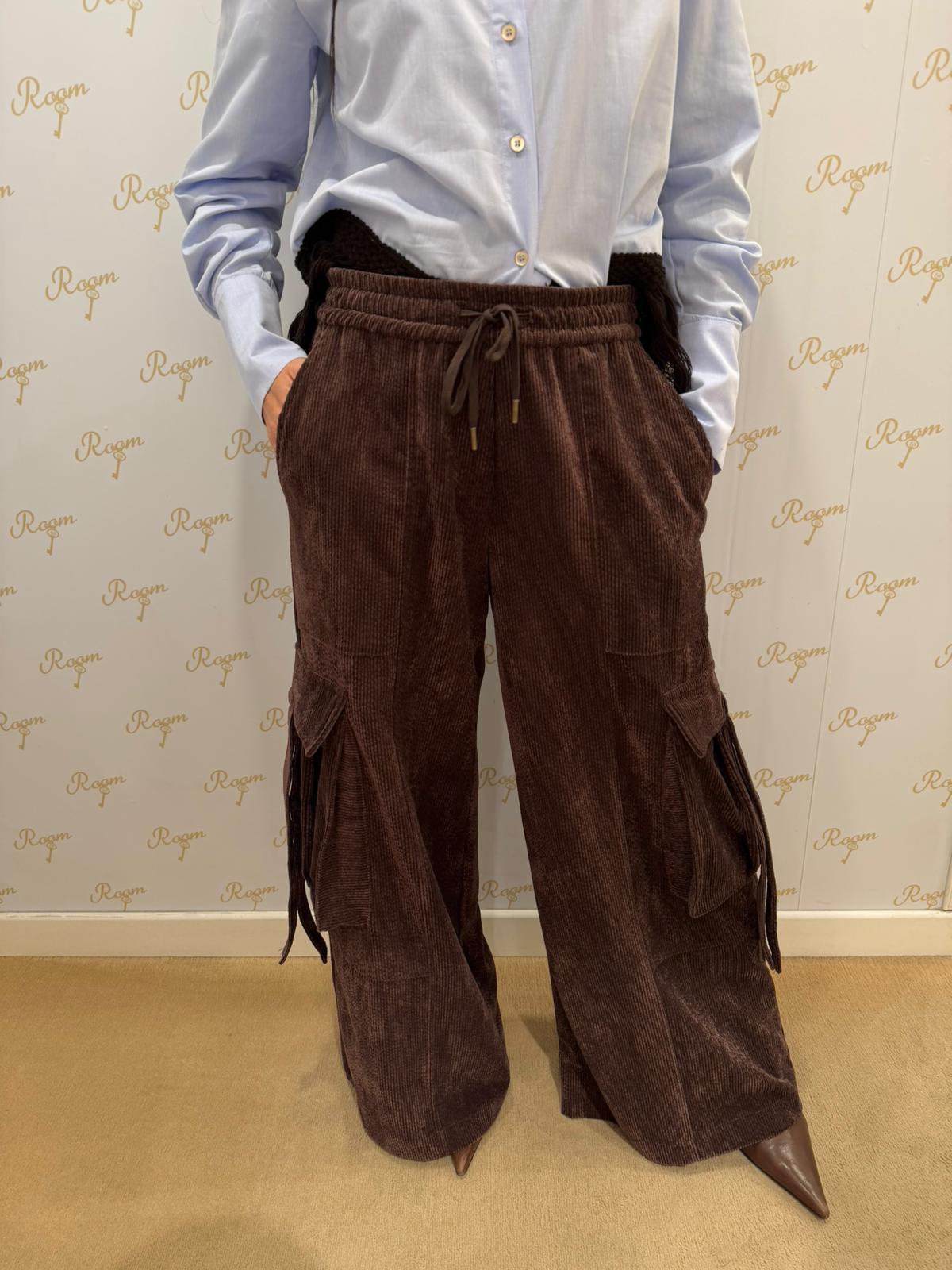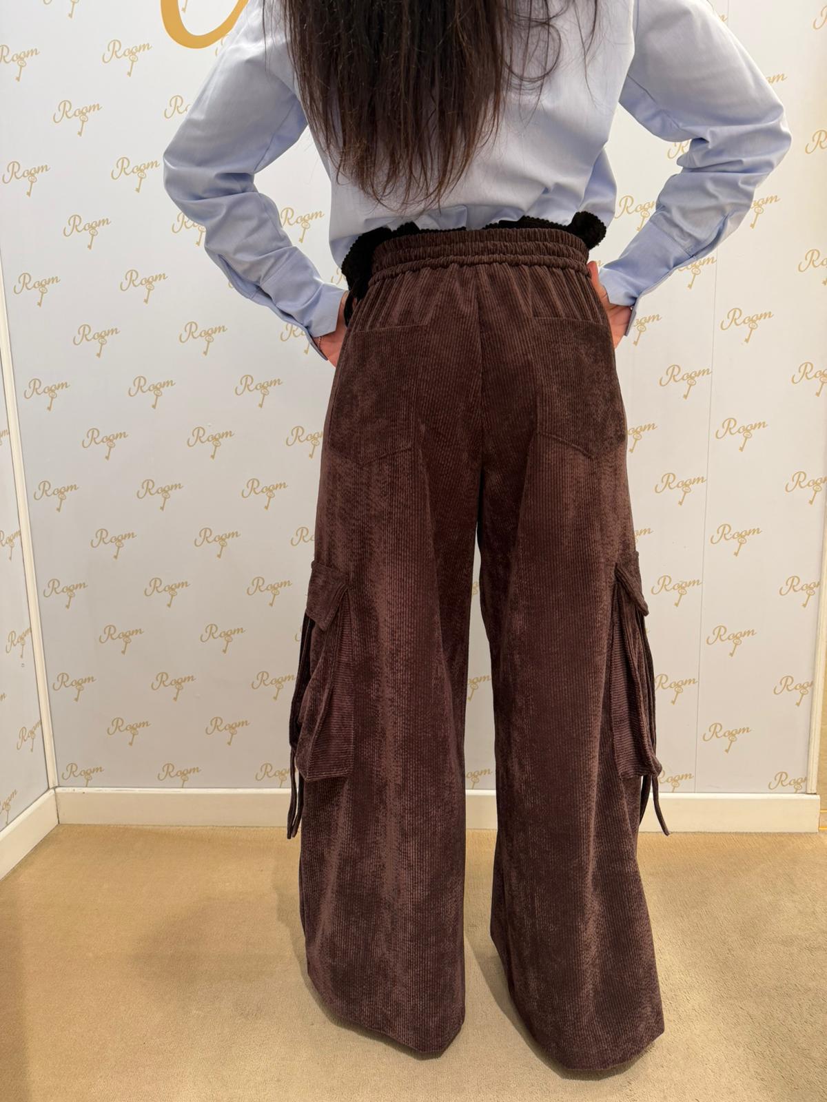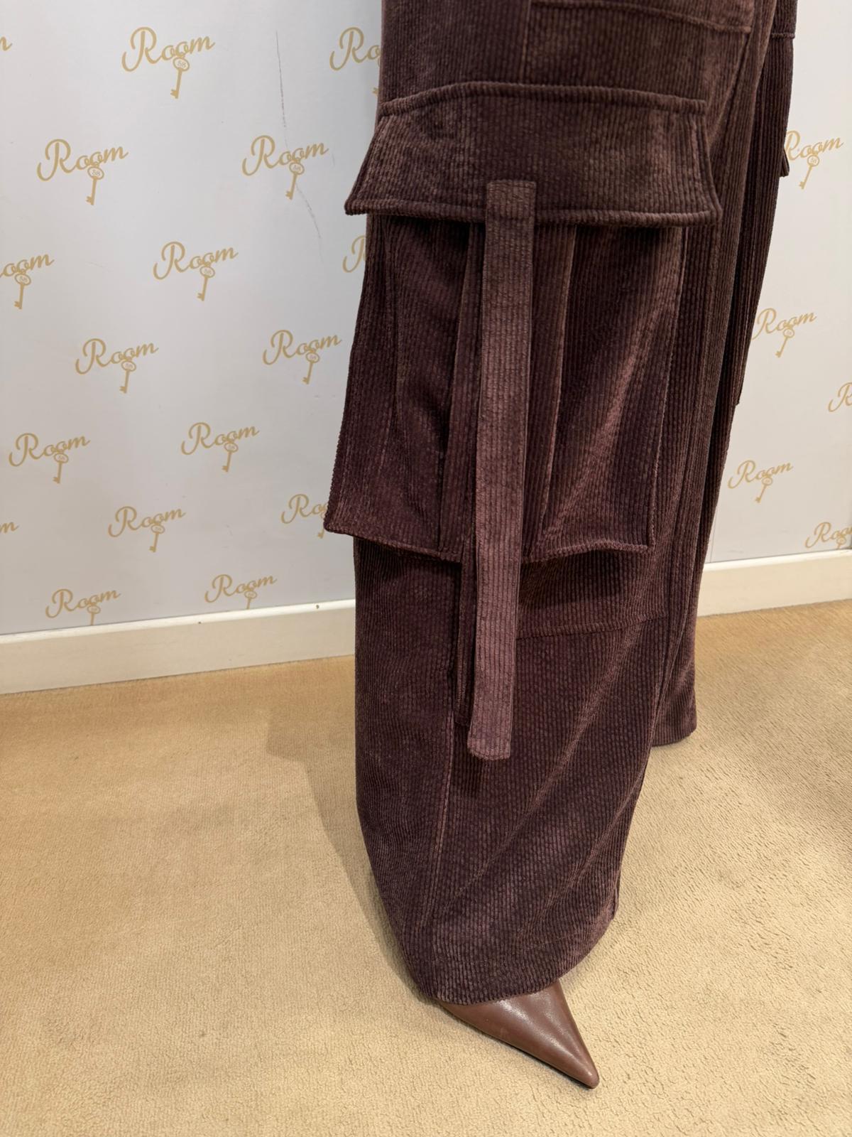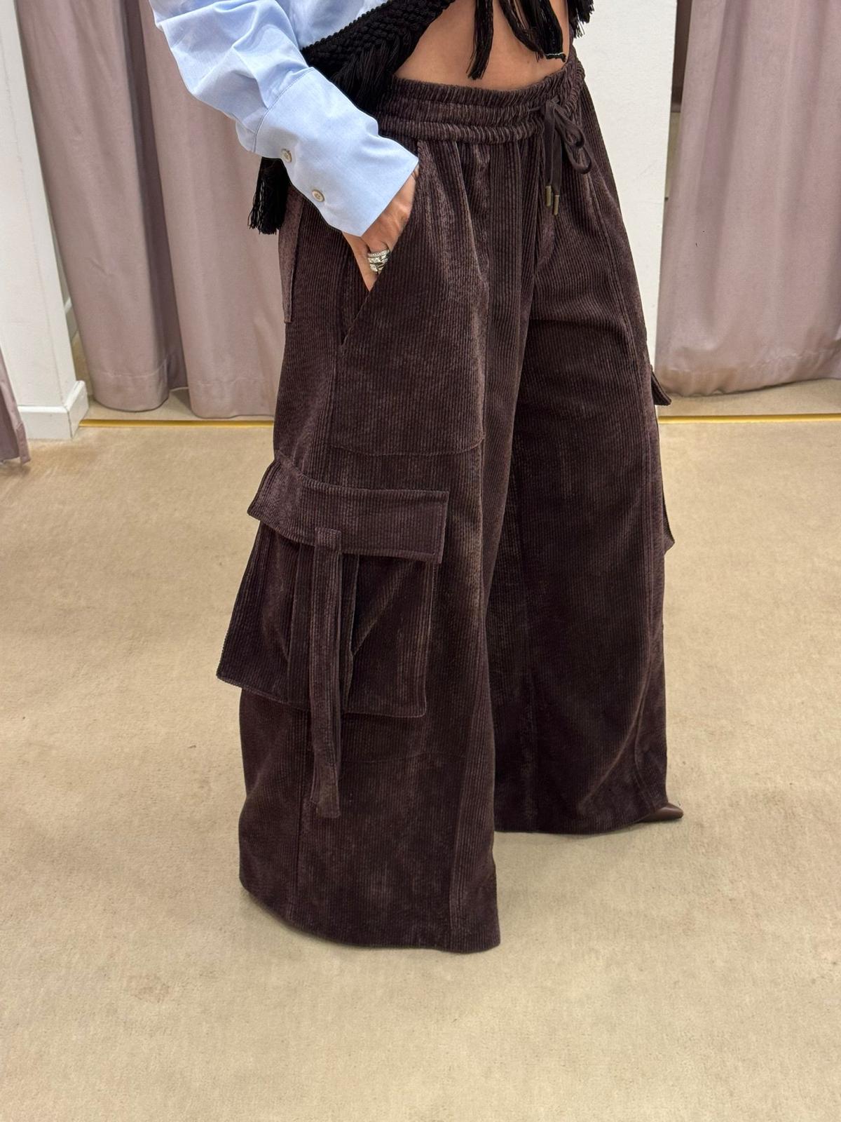 PANTALONE CARGO AMPIO IN VELLUTO MORO TENSIONE IN