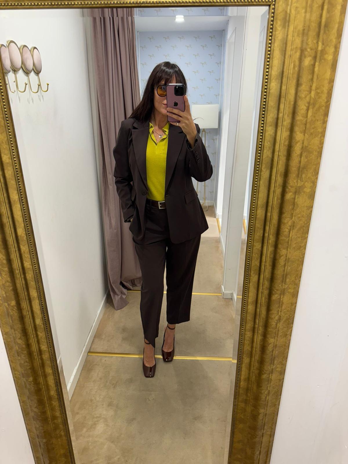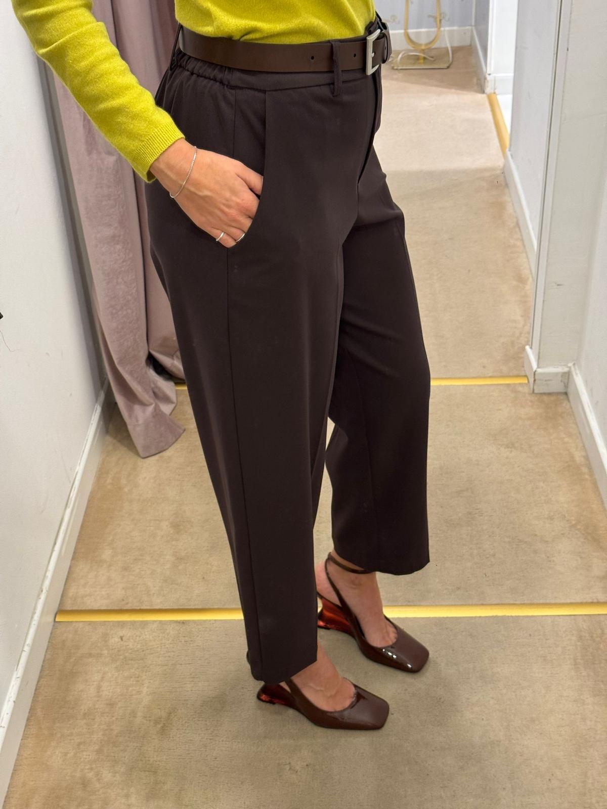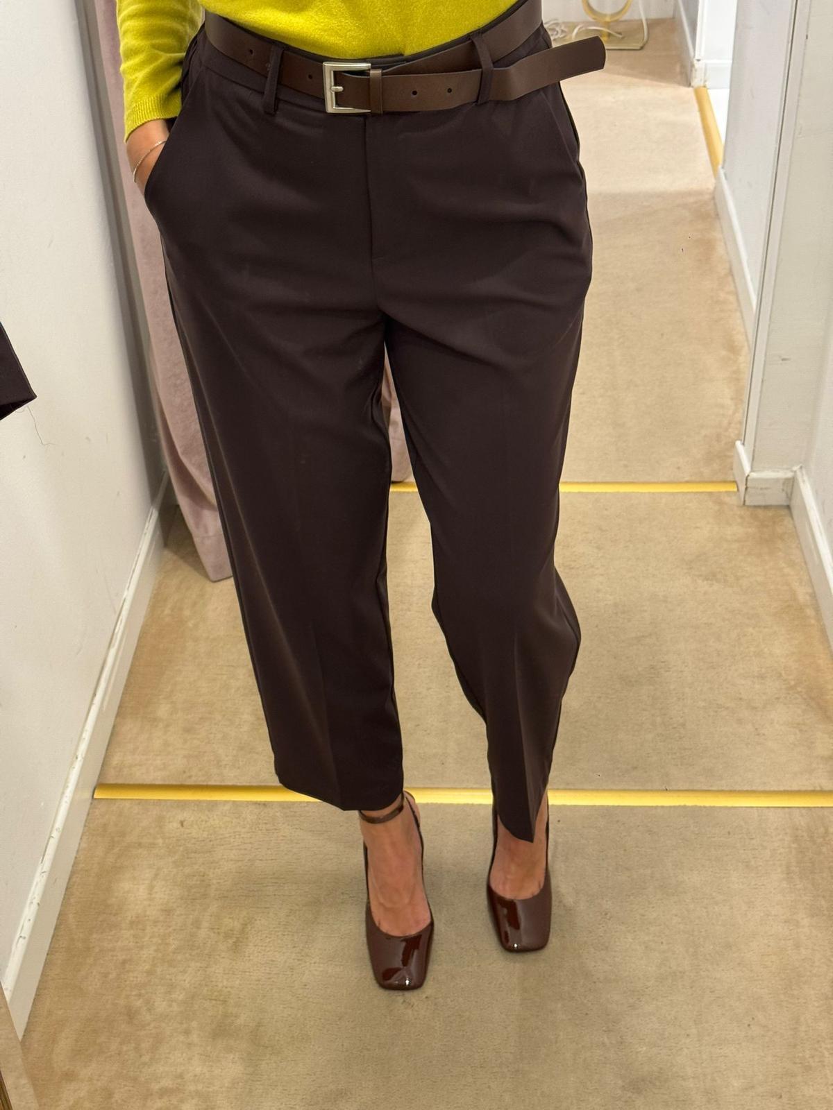 Dunkelbraune, gerade geschnittene Hose mit Zug