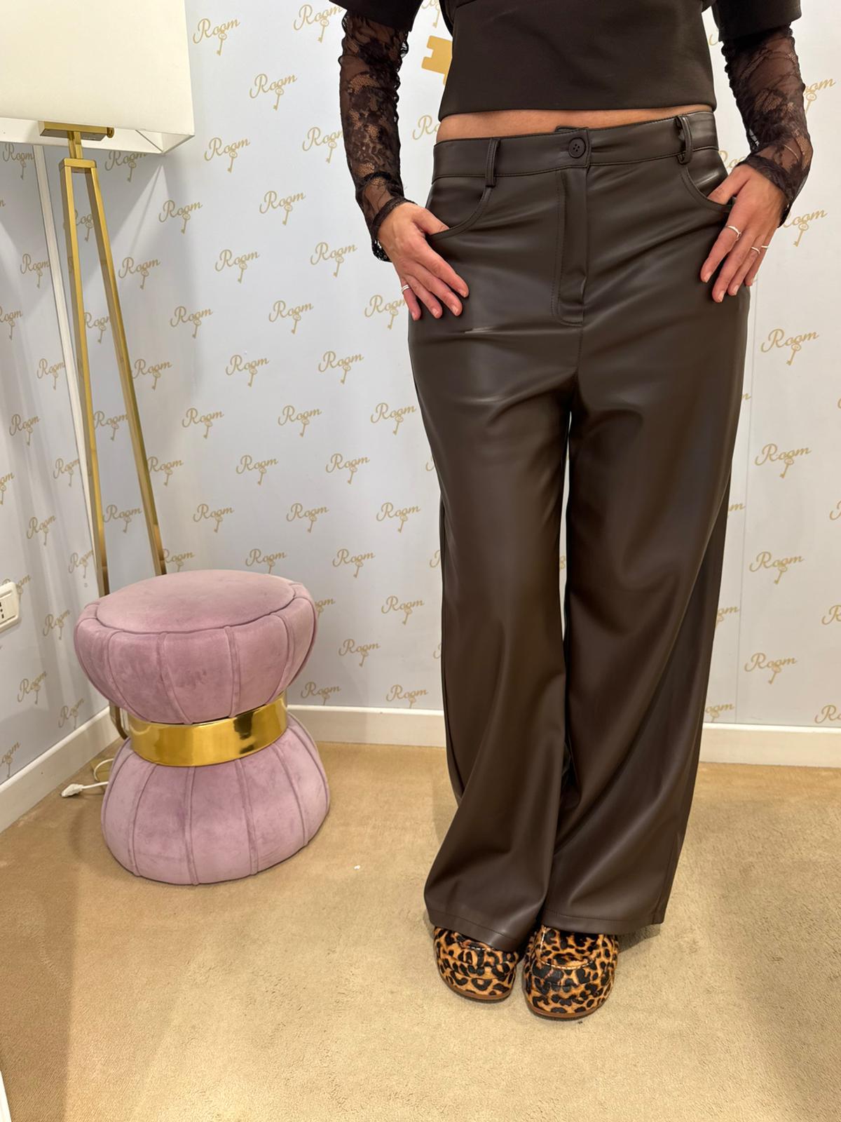 Dunkelbraune Hose aus Öko-Leder mit Zugband