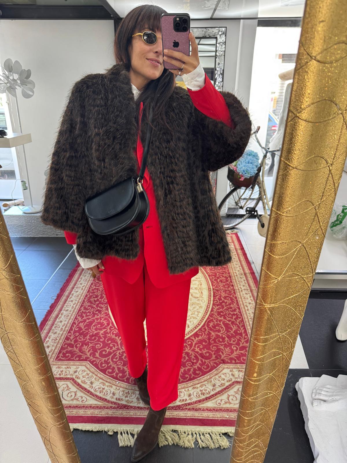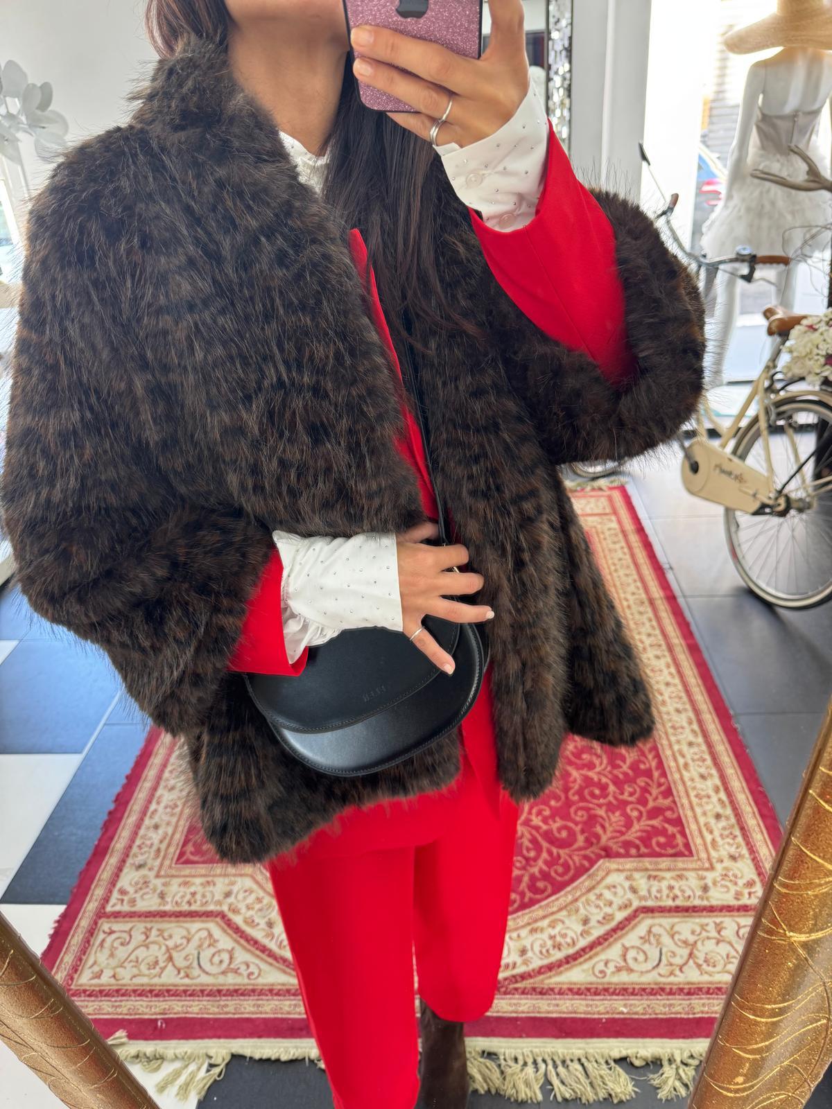 • Farbe: Dunkelbraun mit helleren Nuancen und einer fuchsartigen Textur, die dem Stoff Tiefe und Bewegung verleiht.