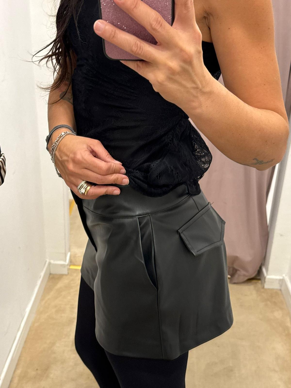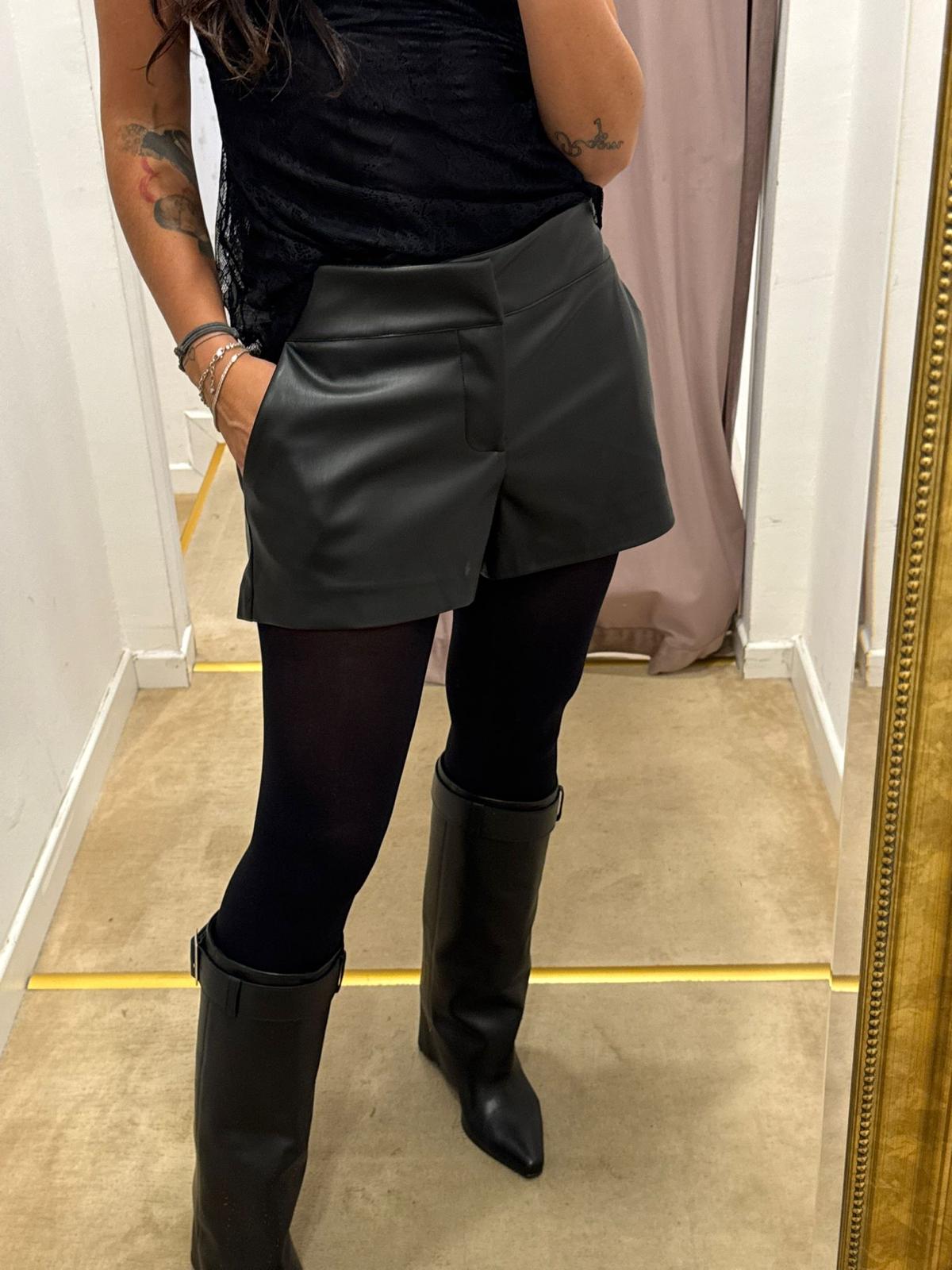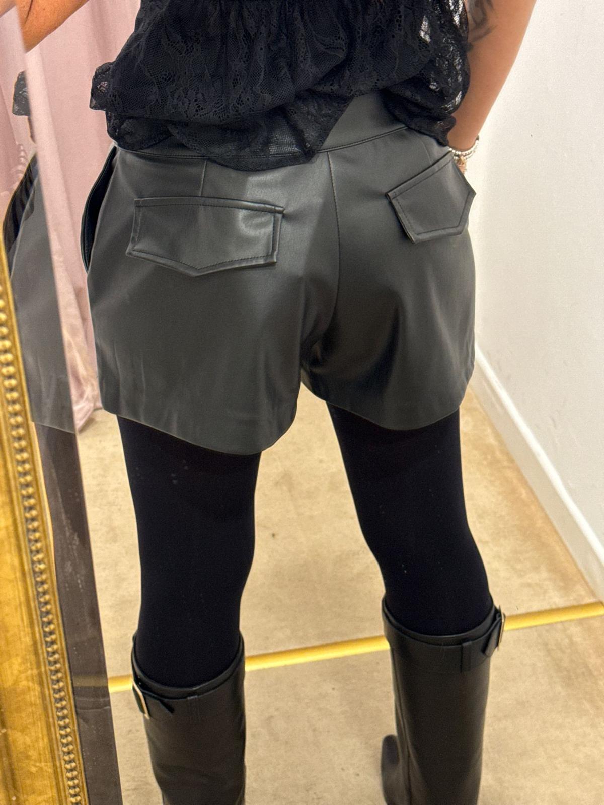 SCHWARZE KUNSTLEDER-SHORTS MIT ZÖFFNUNG