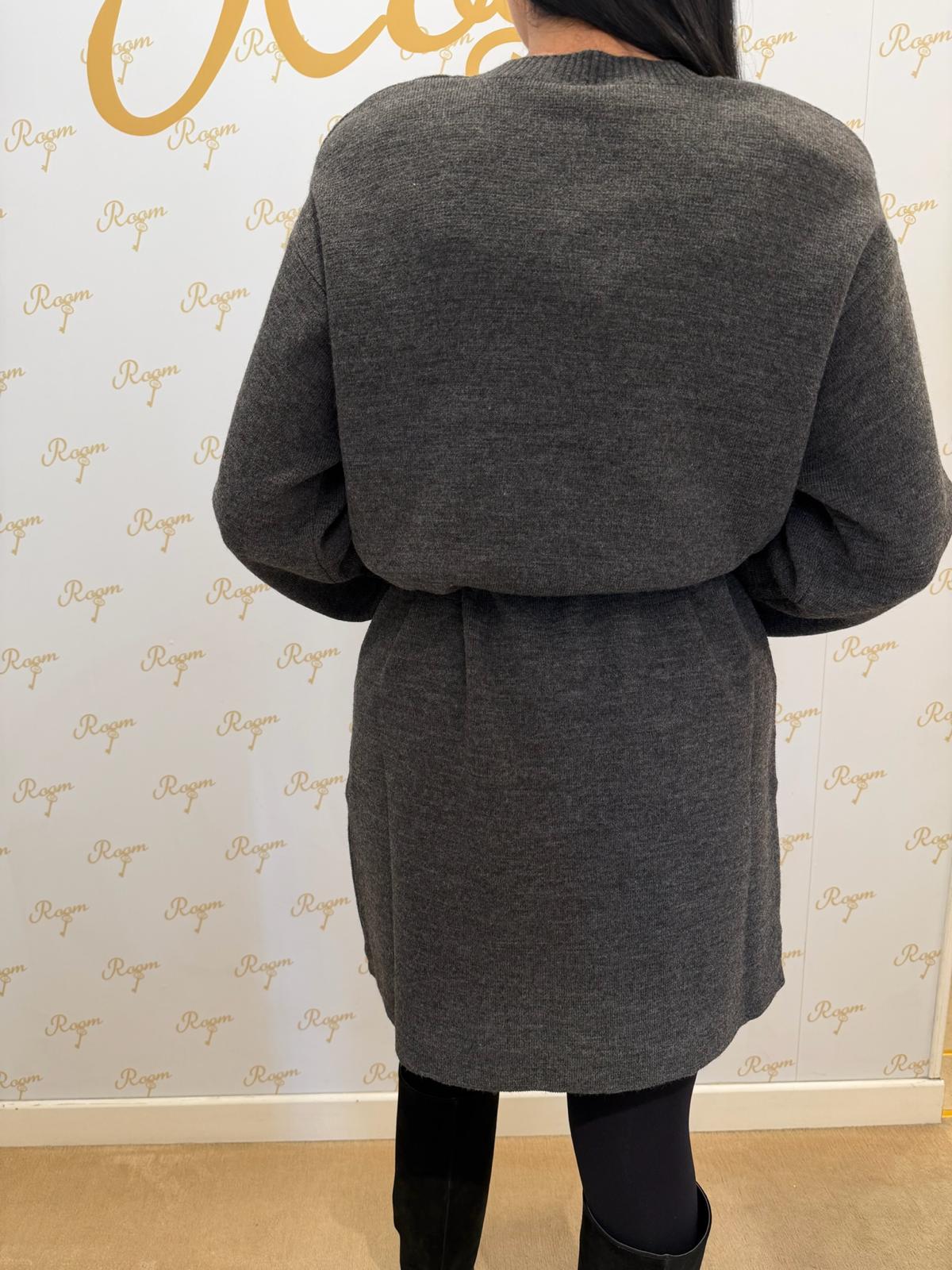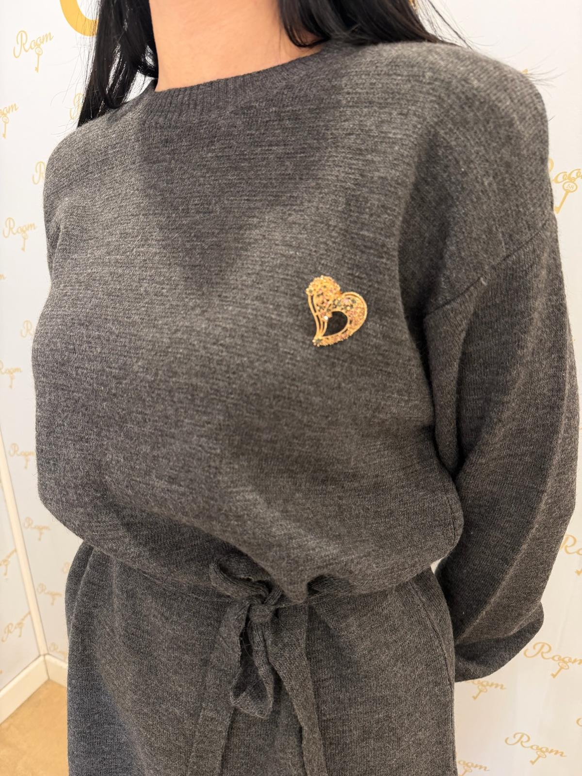 MINI ABITO GRIGIO IN MAGLIA CON SPILLA TENSIONE IN