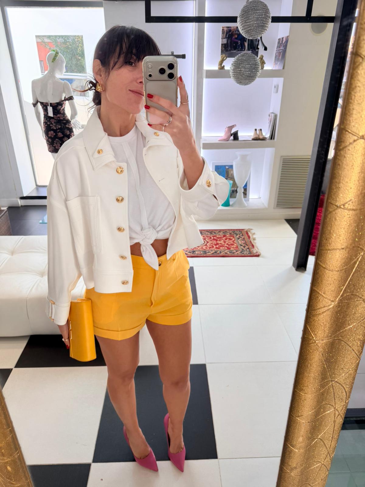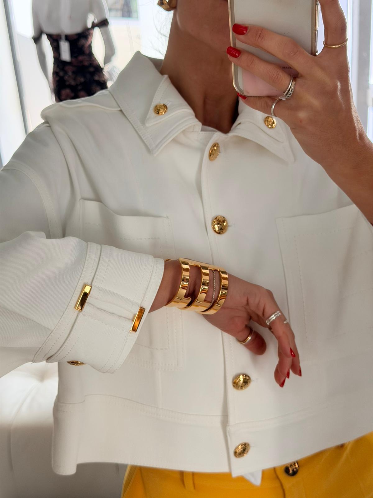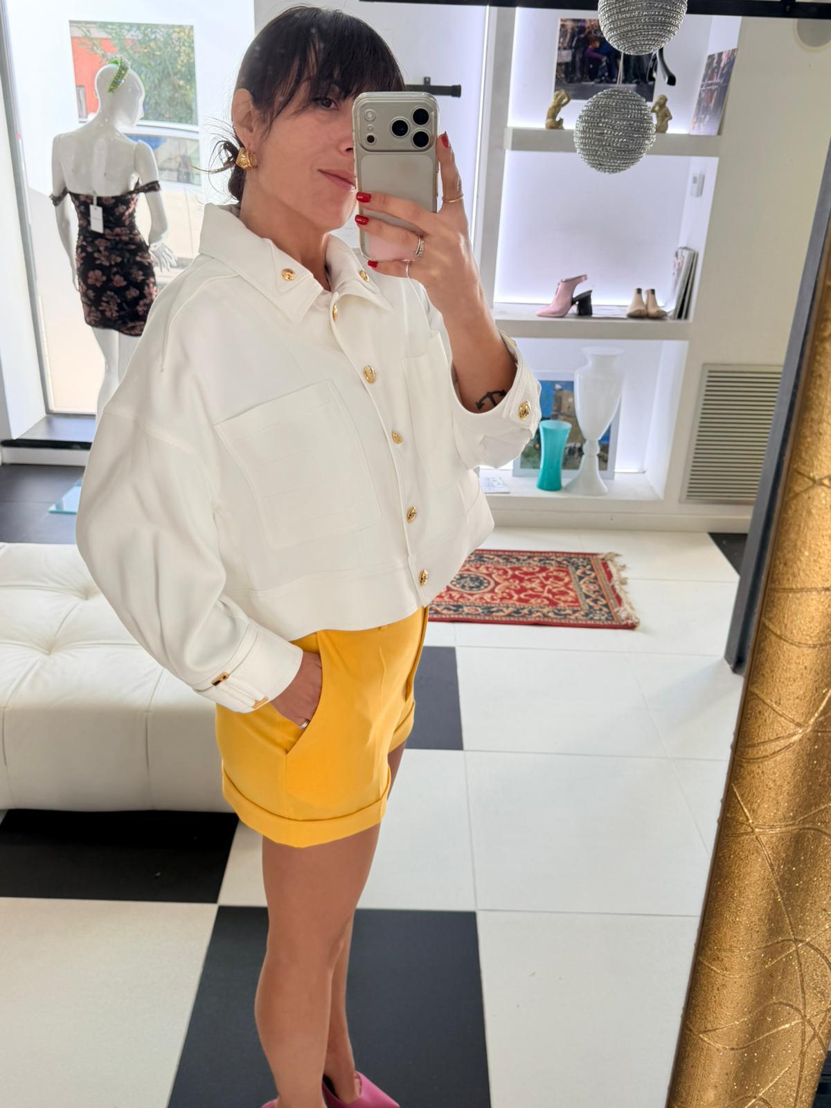 CABAN AVORIO IN GABARDINA CON BOTTONI GIOIELLO ELISABETTA FRANCHI