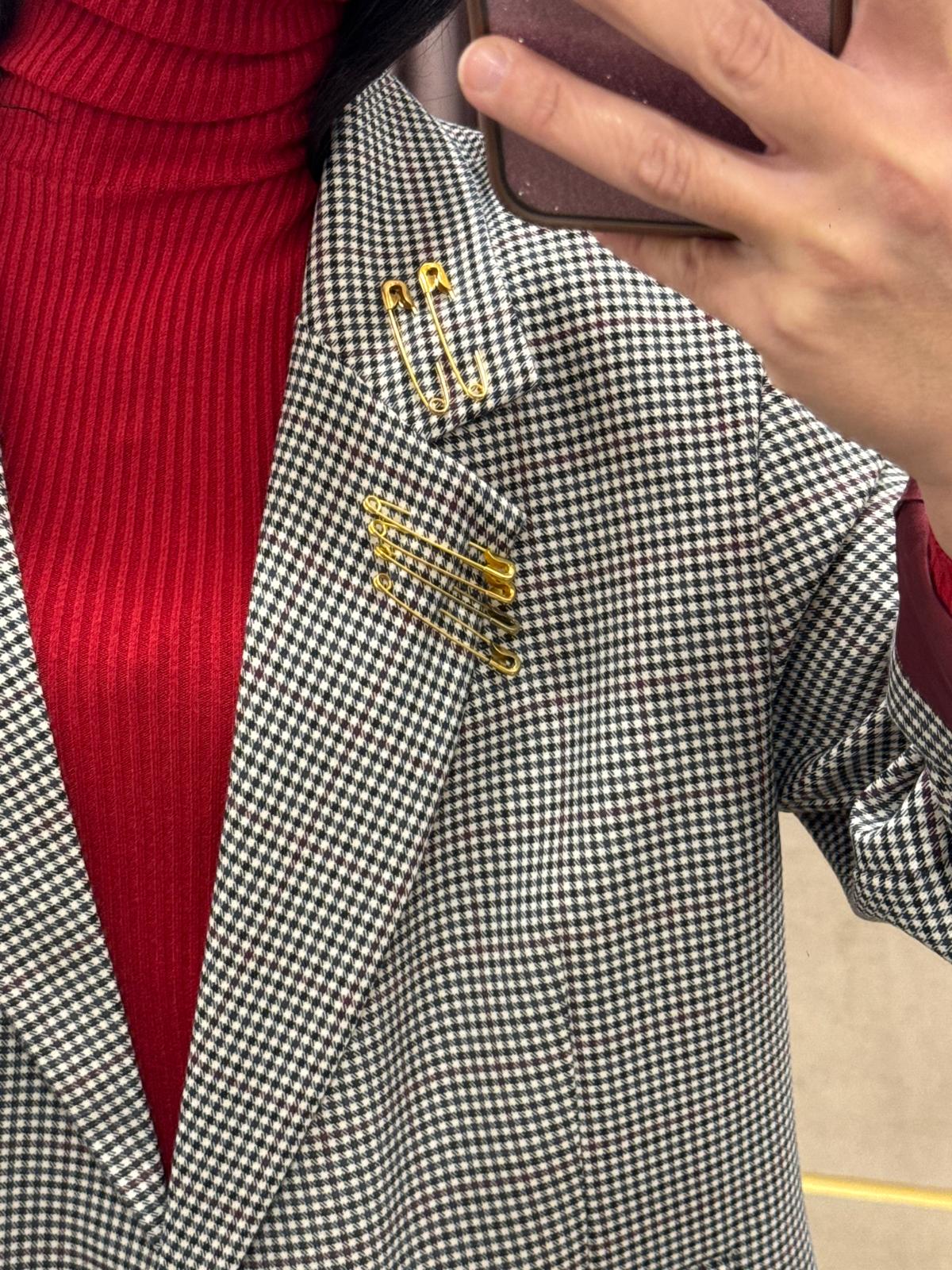• Dettagli: Spille da balia decorative color oro sul revers (rimovibili).