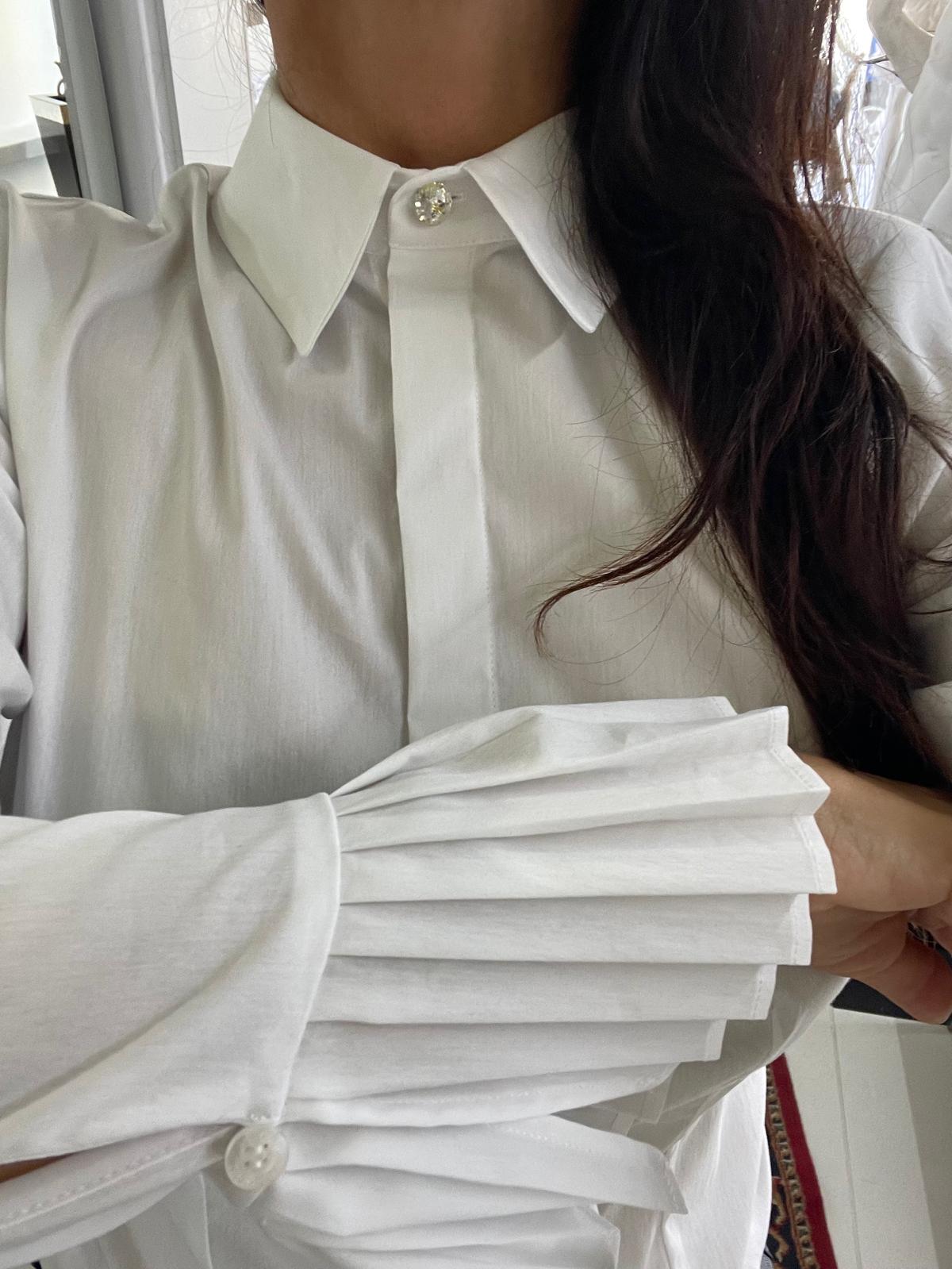 - Pleated details on the cuffs