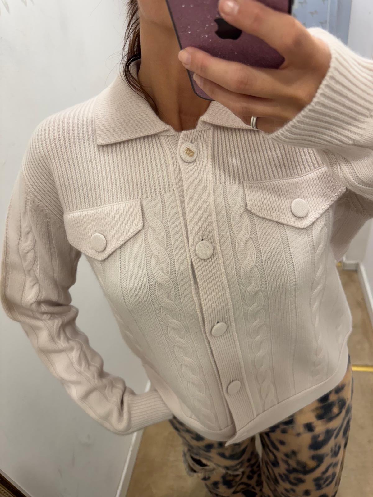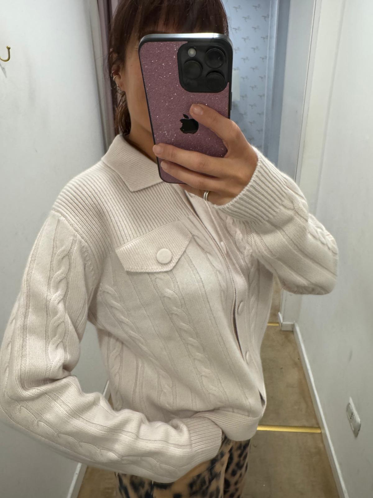 This wool and cashmere cardigan jacket combines the casual soul of denim with the bon-ton charm of fine knitwear. The ribbed and cable knit enhances the texture, while the shirt collar and tightly ribbed yoke add structure and style.