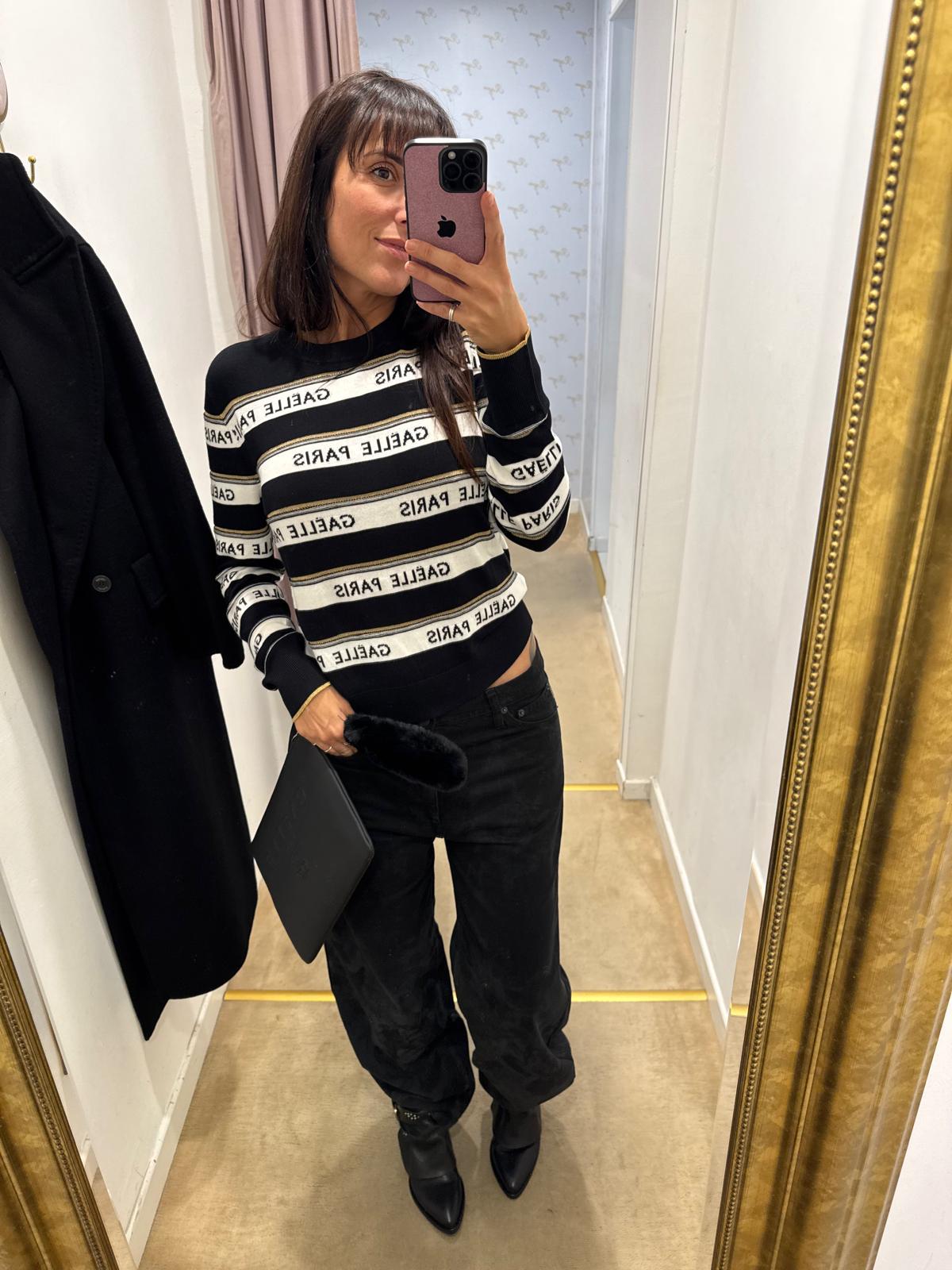 This striped sweatshirt by Gaëlle Paris is a versatile and trendy piece, perfect for completing your casual outfits with an exclusive touch.