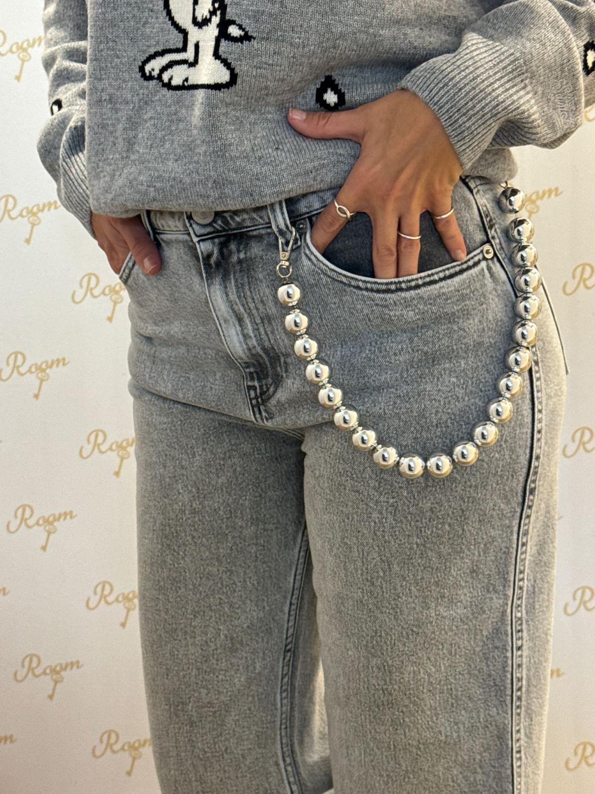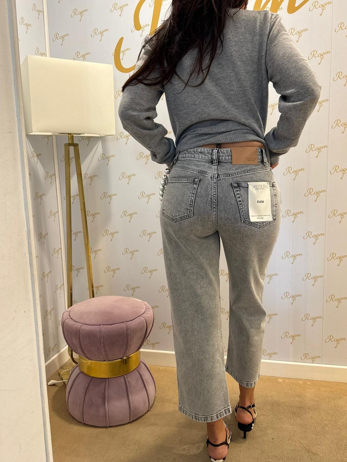 GREY JEANS WITH PEARL CHAIN VICOLO