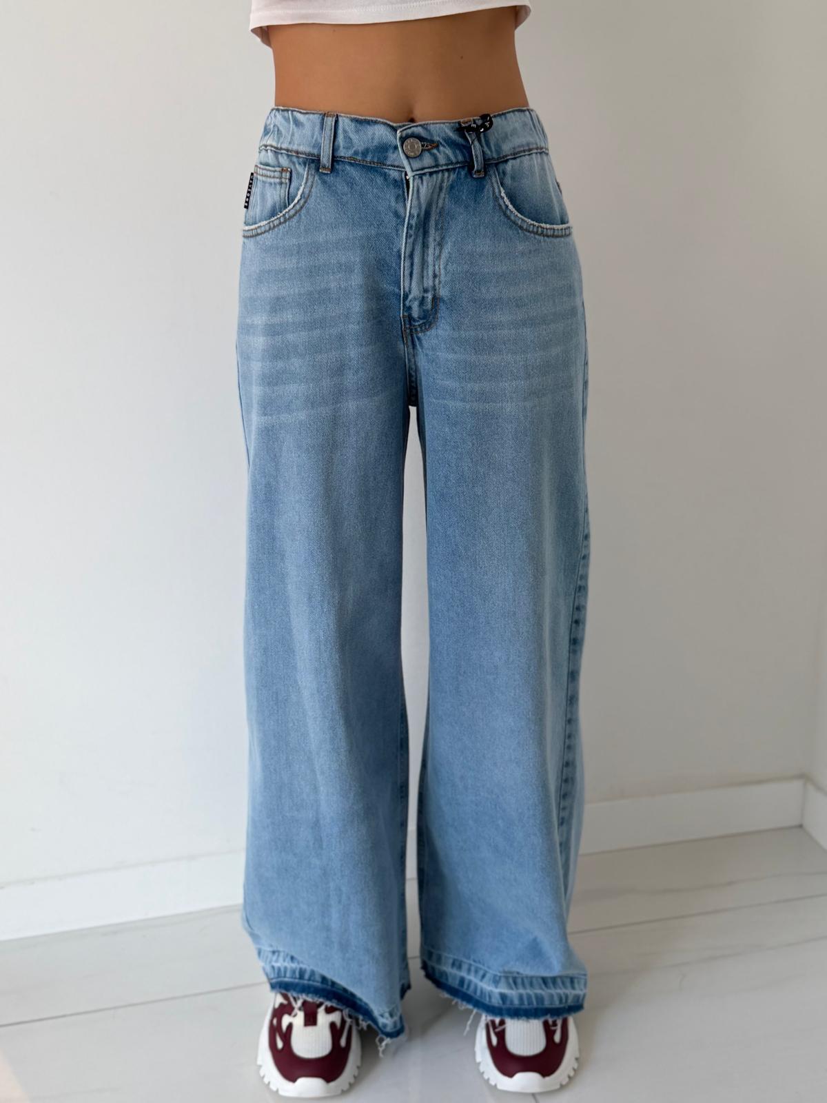 • Color: light blue denim with slight lighter shades in the center of the legs, washed effect.