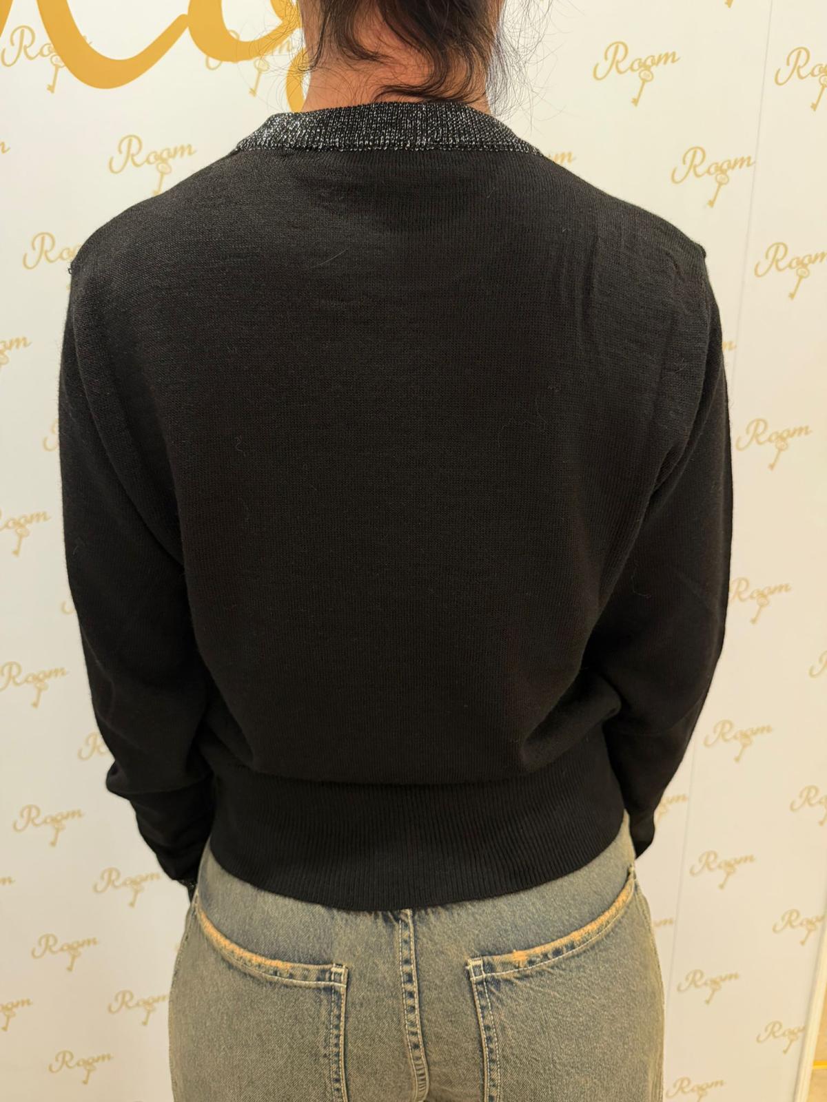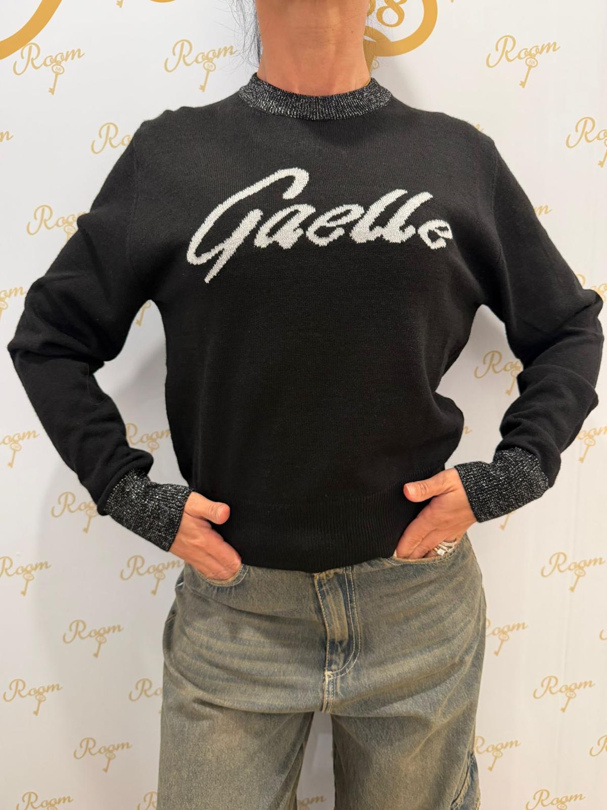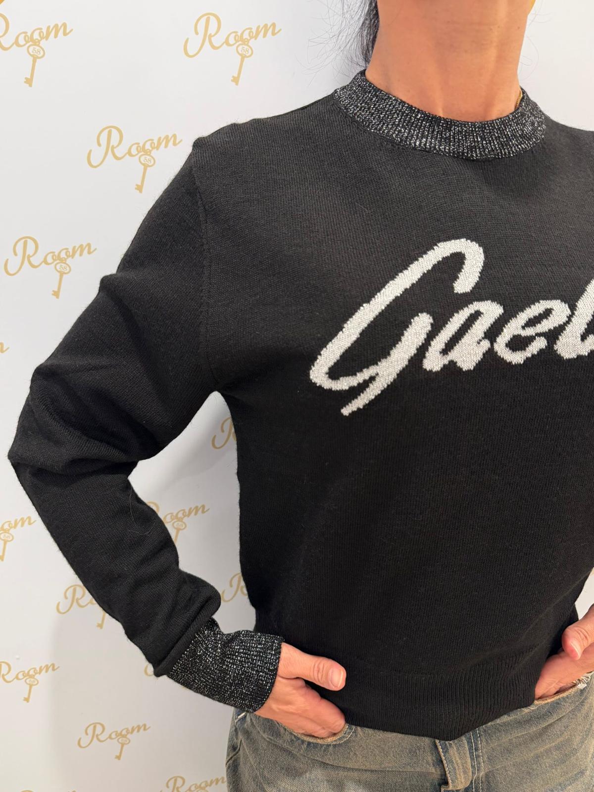 GAELLE BLACK SWEATER WITH LUREX EMBROIDERY