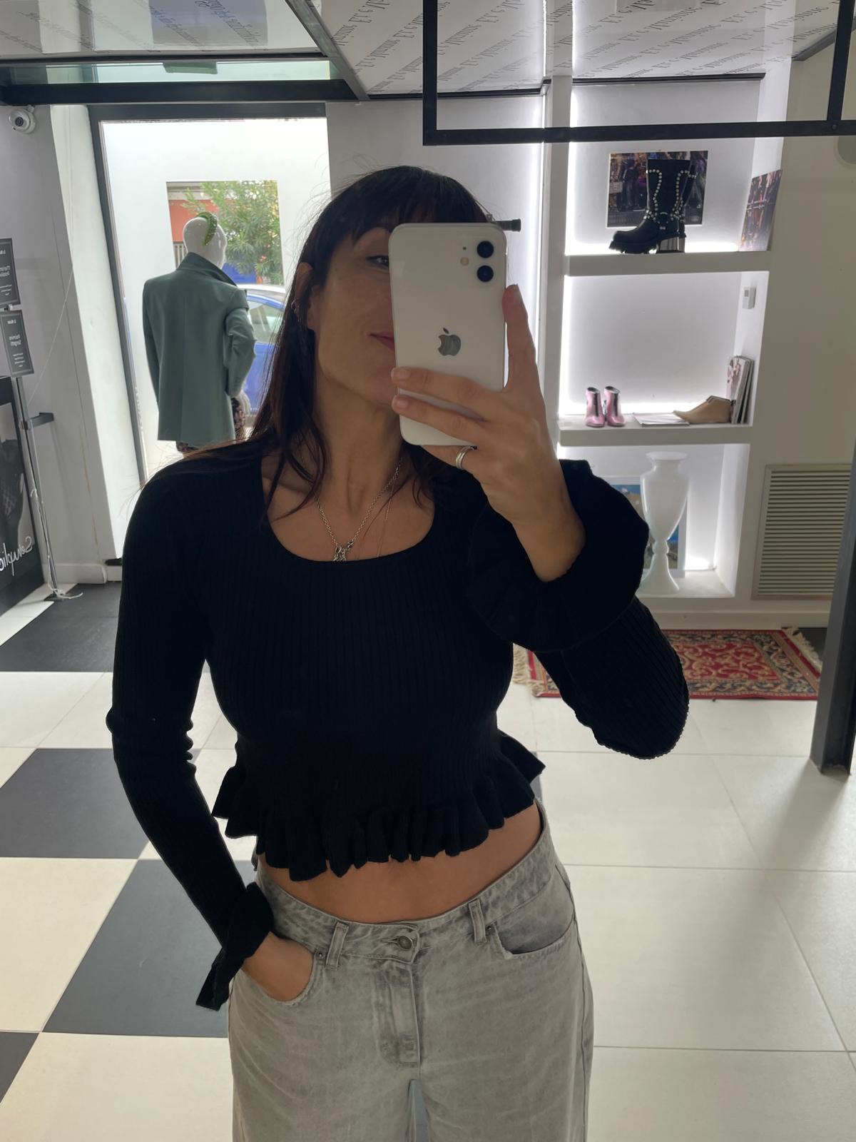 HAVEONE BLACK SWEATER WITH RUFFLES