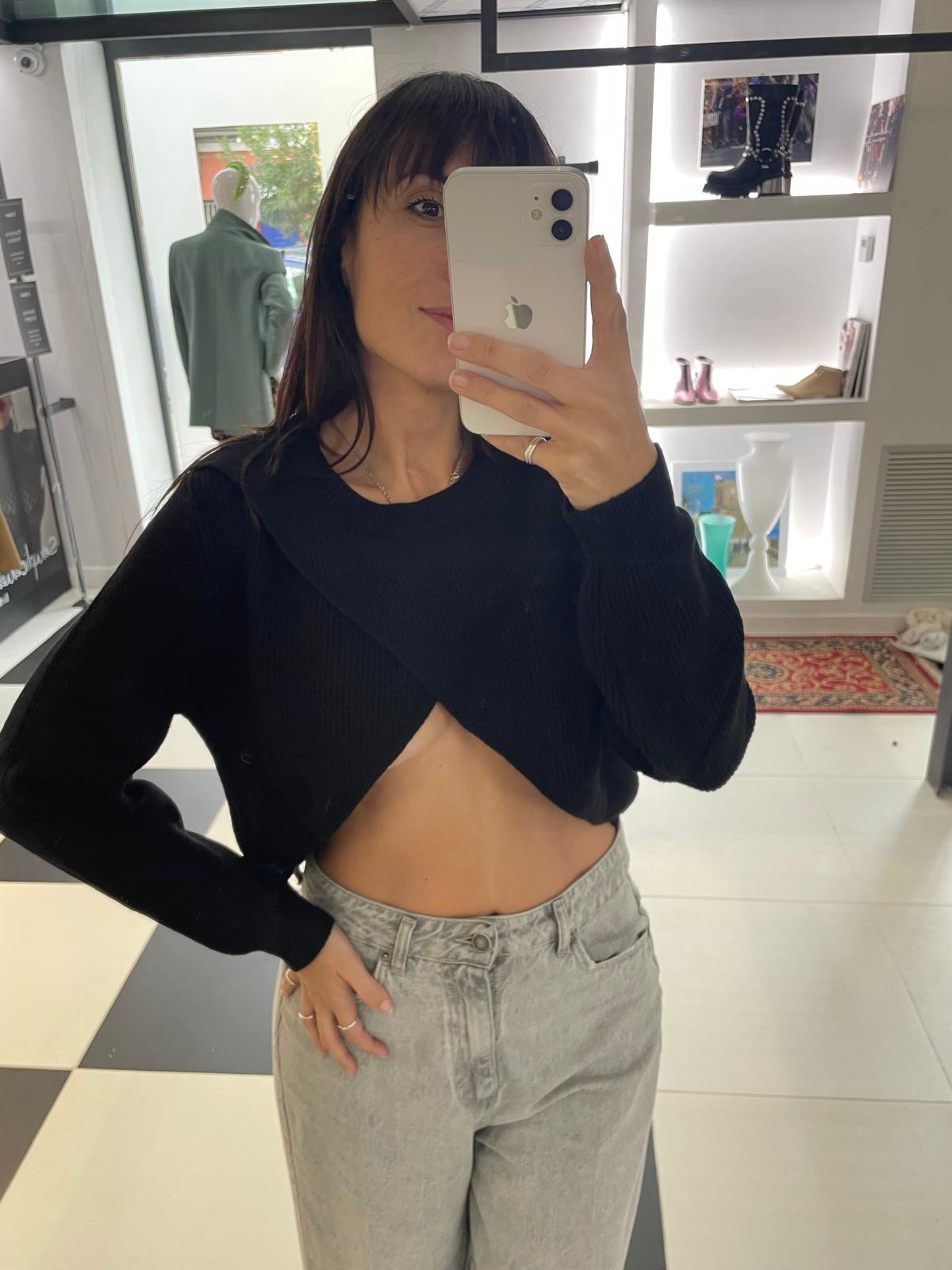 HAVEONE CROPPED BLACK SWEATER