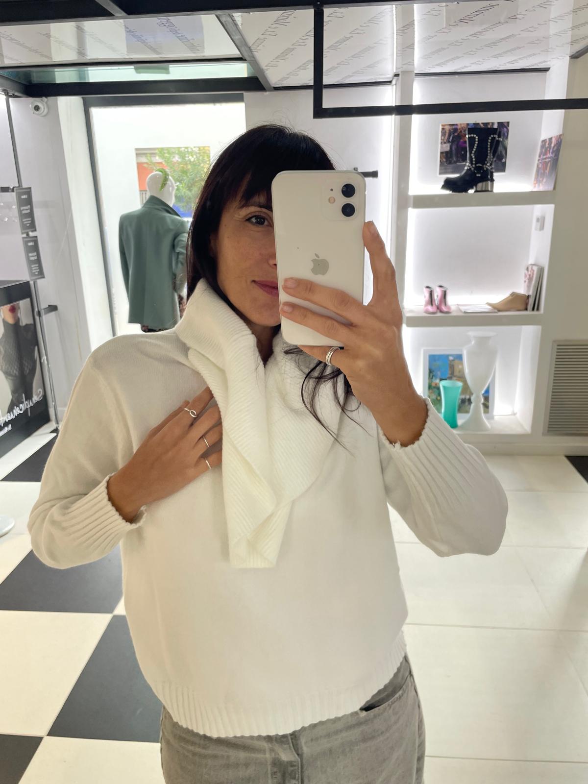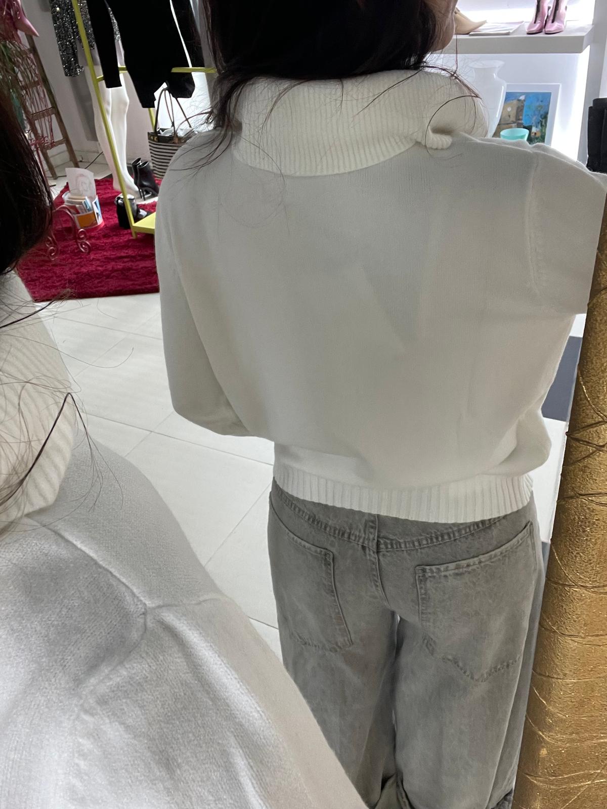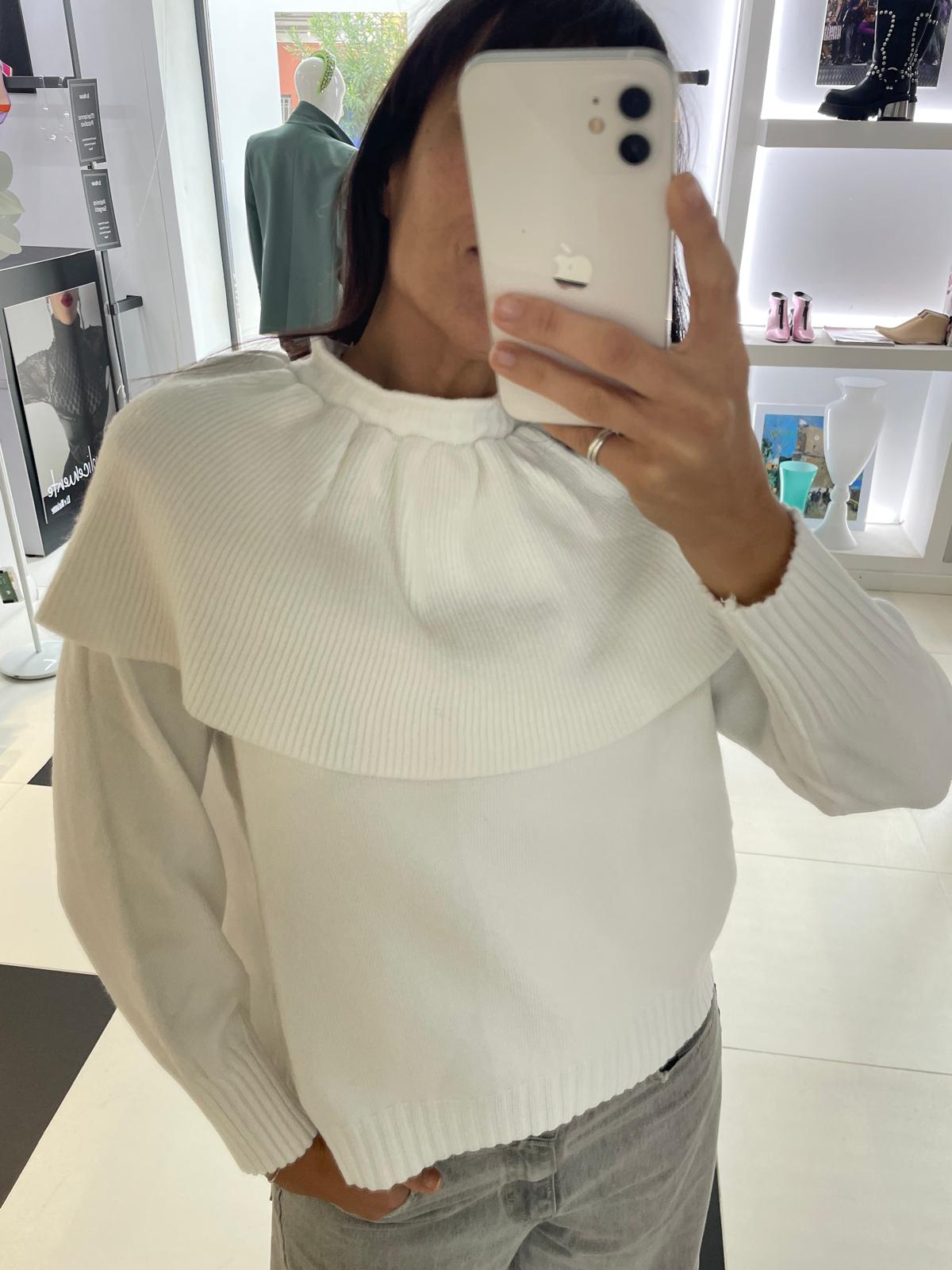 CREAM SWEATER WITH FRILL NECK HAVEONE