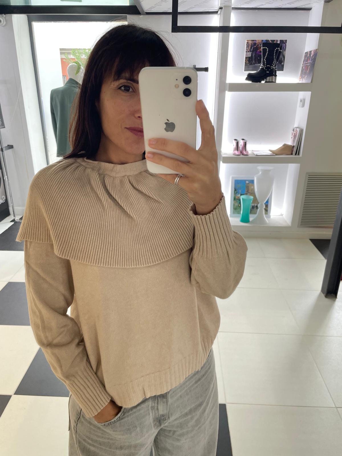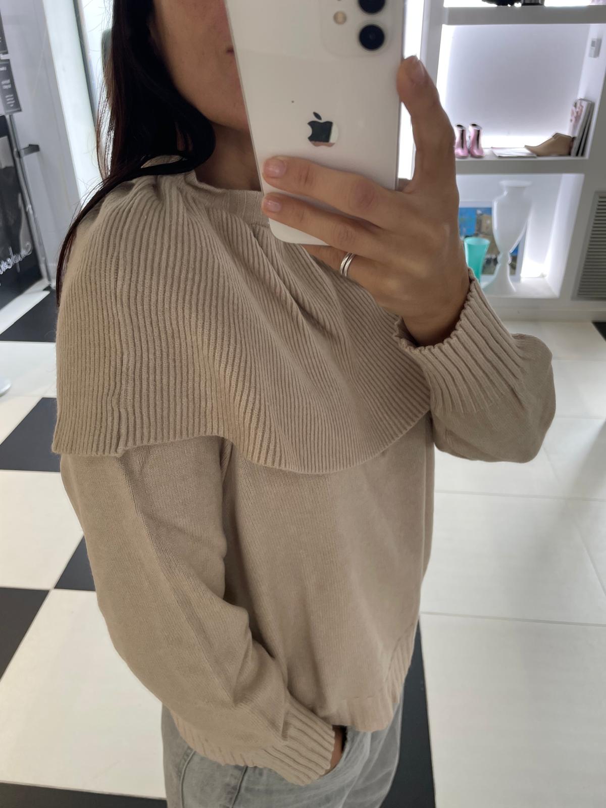 HAVEONE SAND SWEATER WITH RUFFLE COLLAR