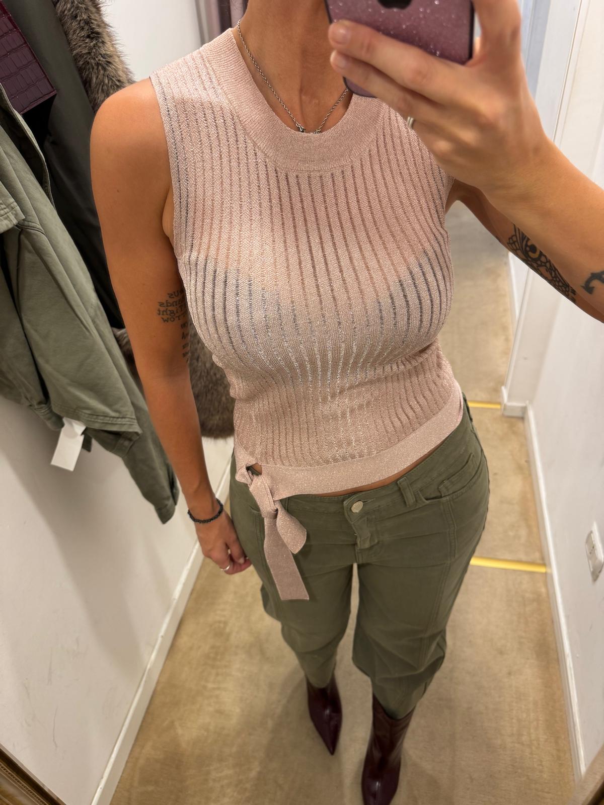 LIUJO POWDER LUREX SLEEVELESS SWEATER
