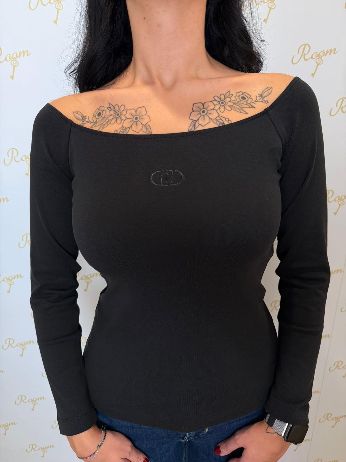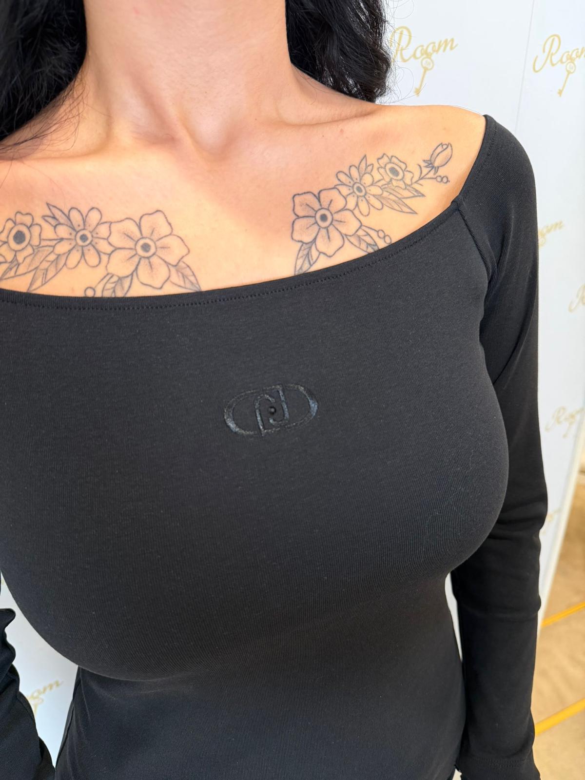 T-SHIRT NERA CON SCOLLO A BARDOT LIUJO