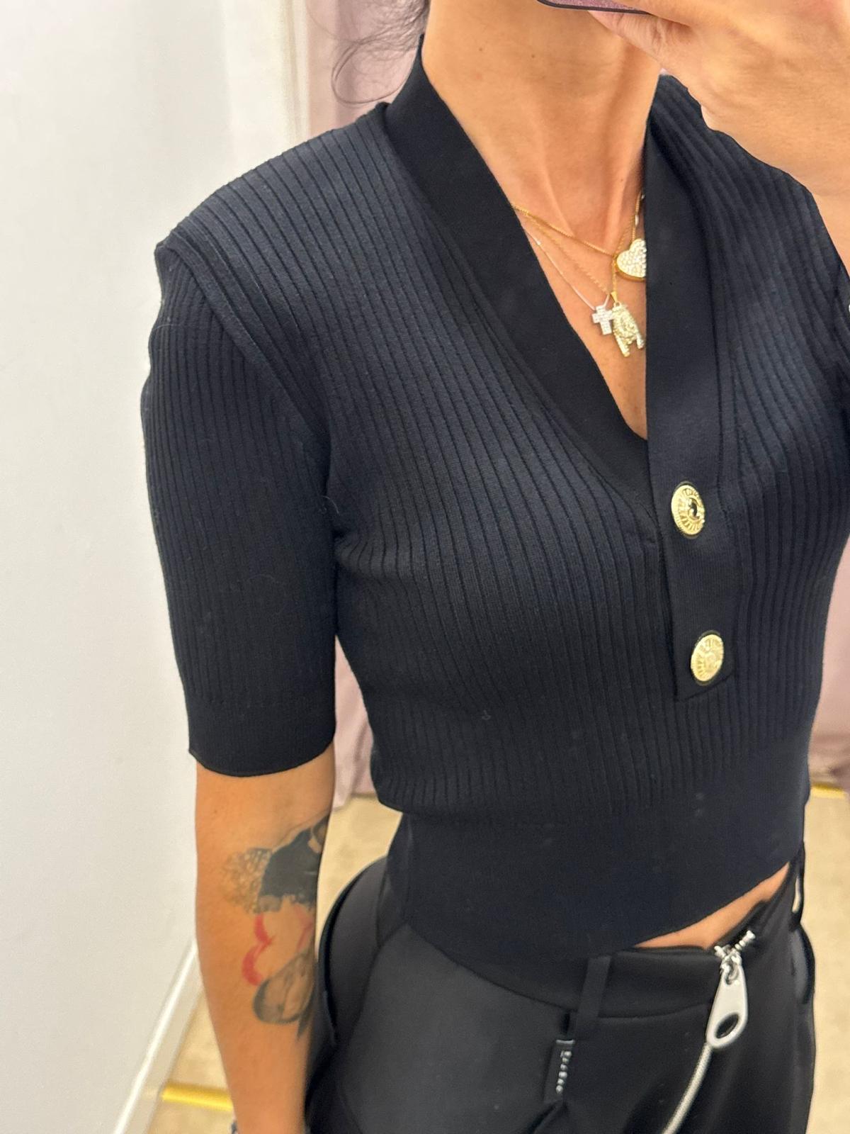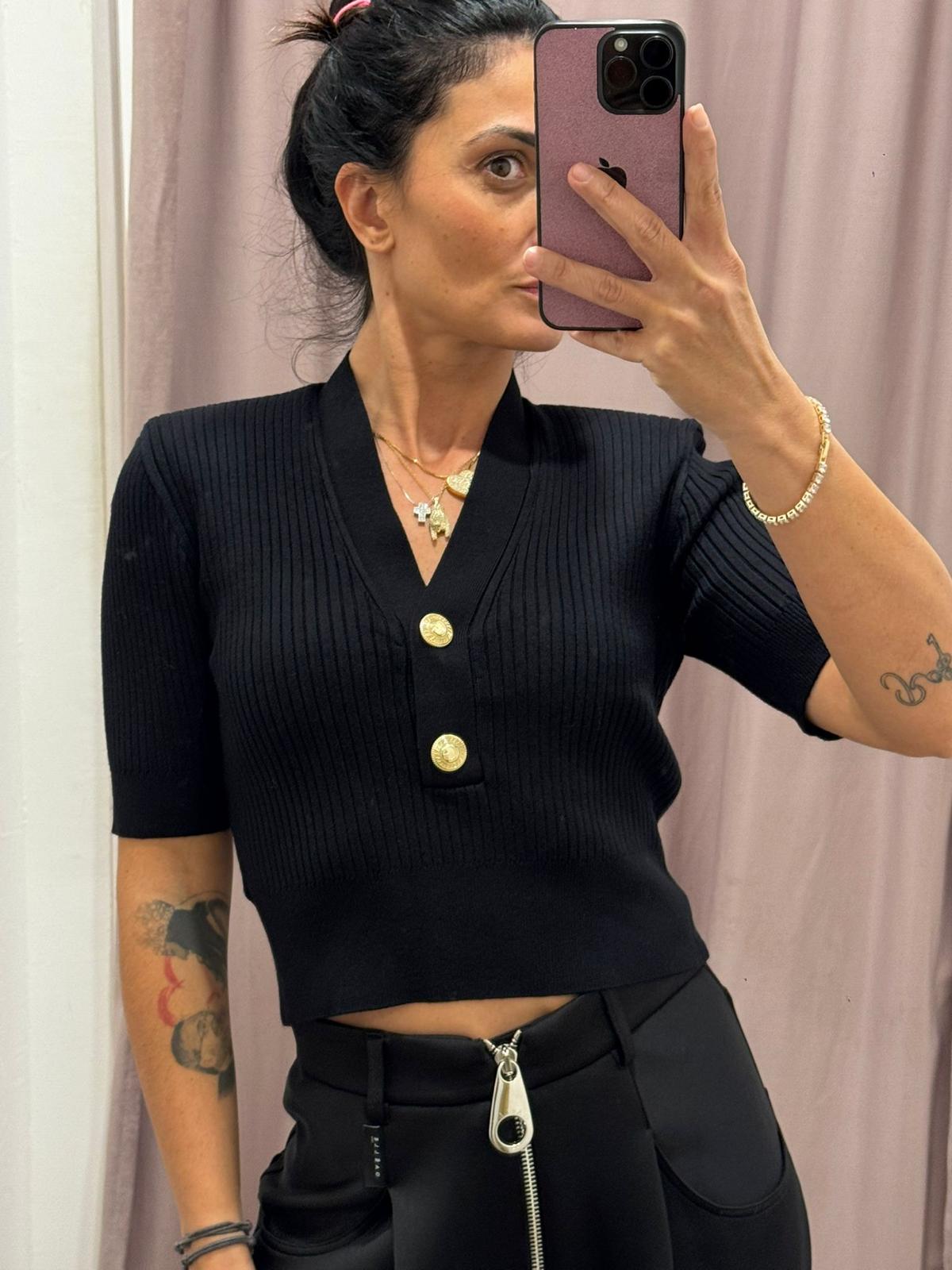 GAELLE KNIT TOP WITH GOLD BUTTONS