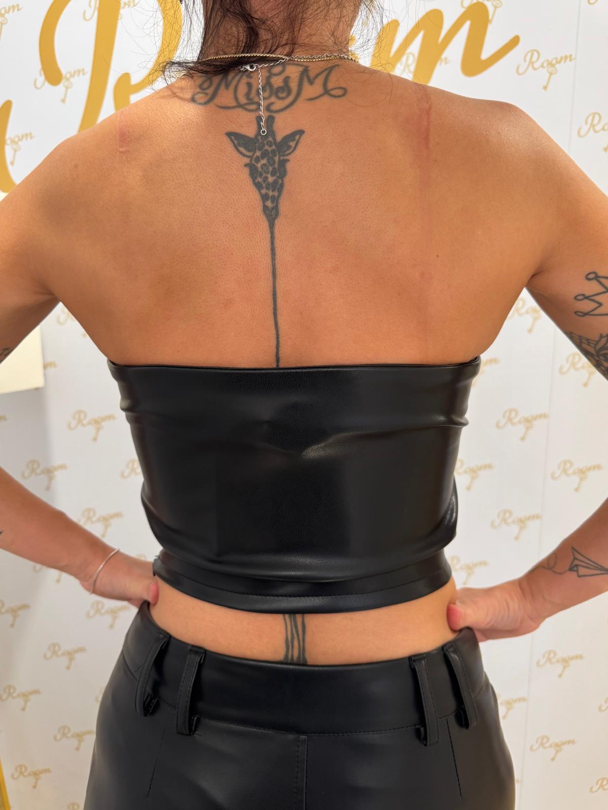 HAVEONE BLACK FAUX LEATHER BANDEAU TOP