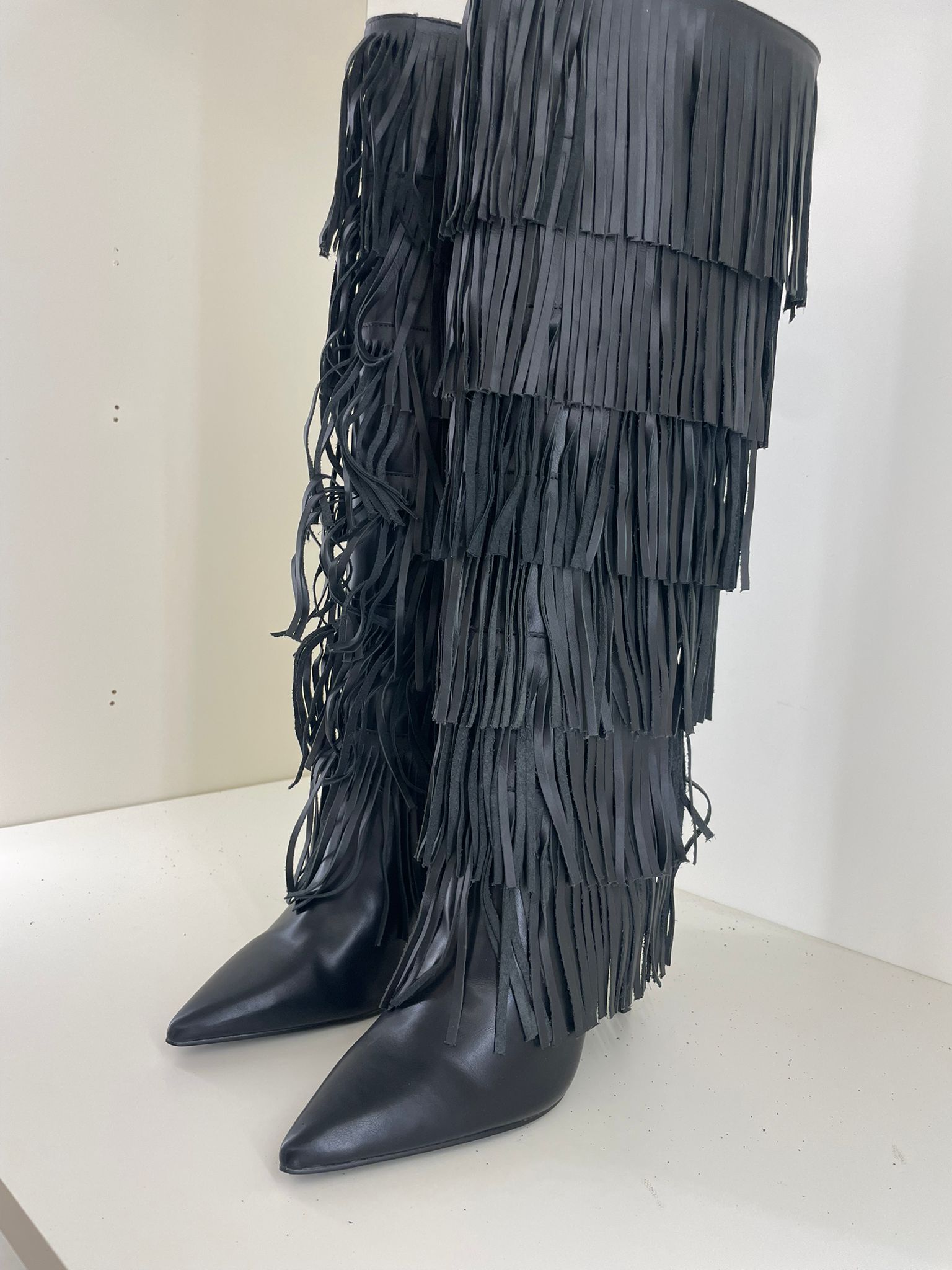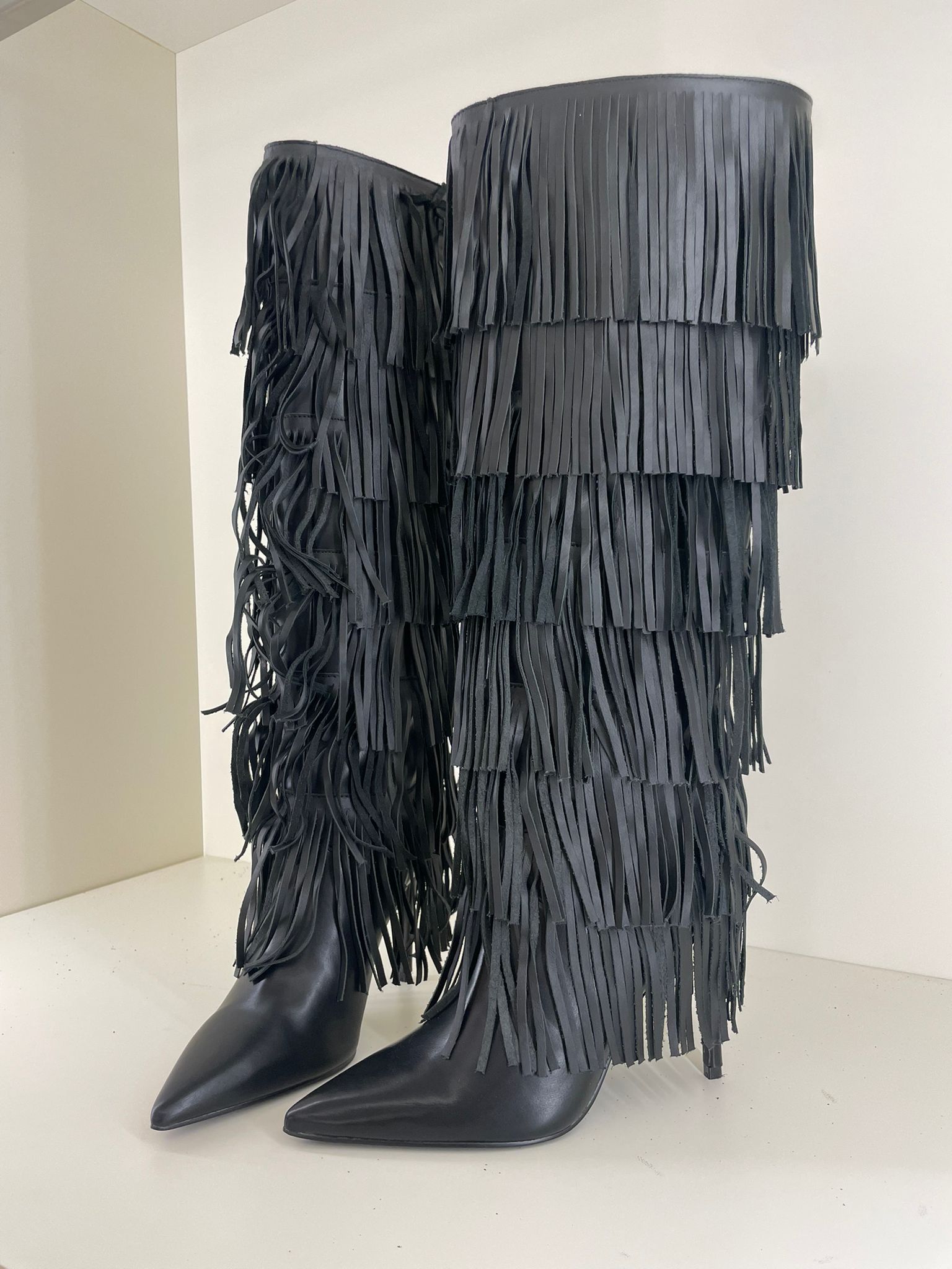 WANDERLUST BLACK FRINGED BOOT STEVE MADDEN