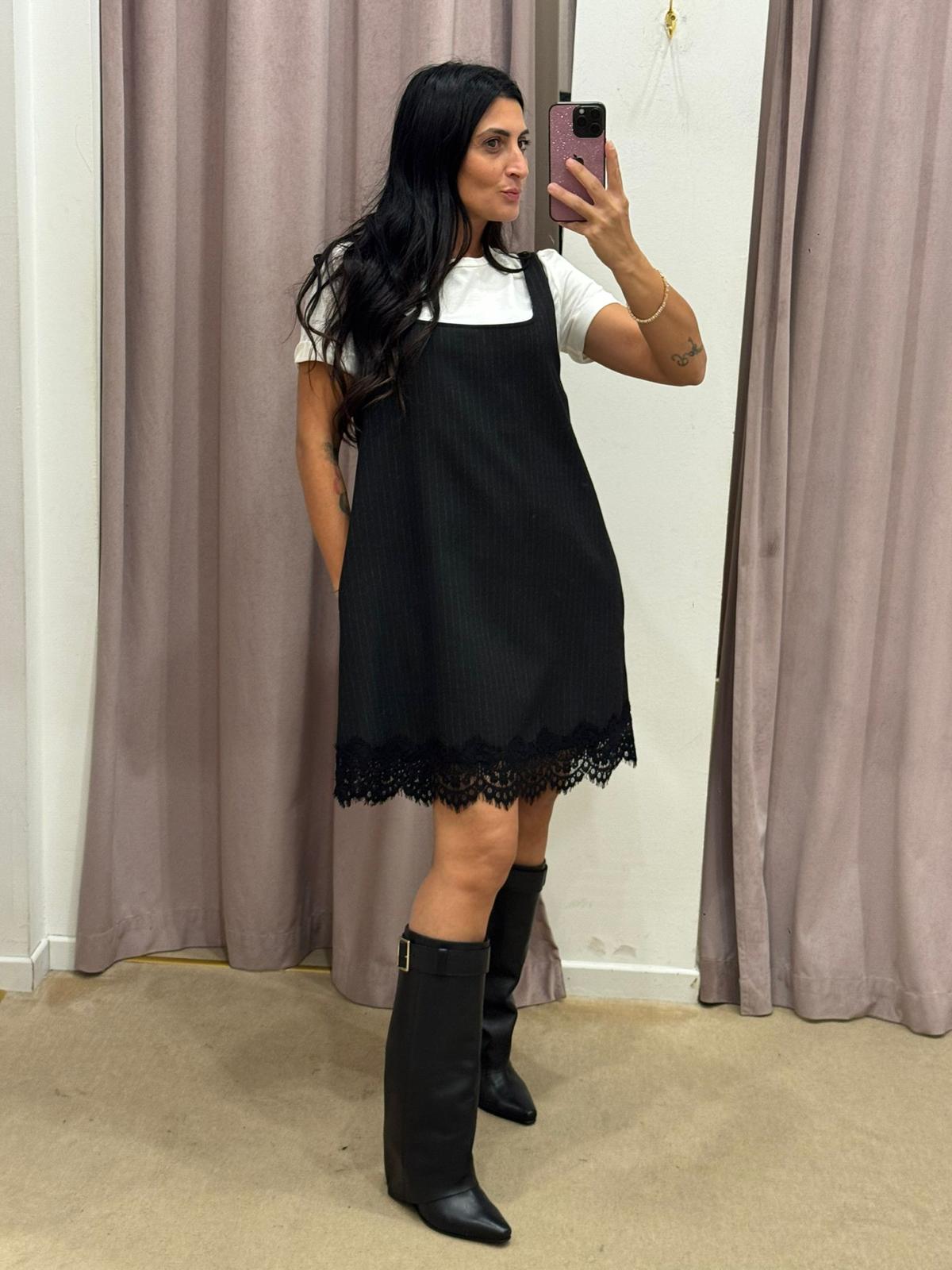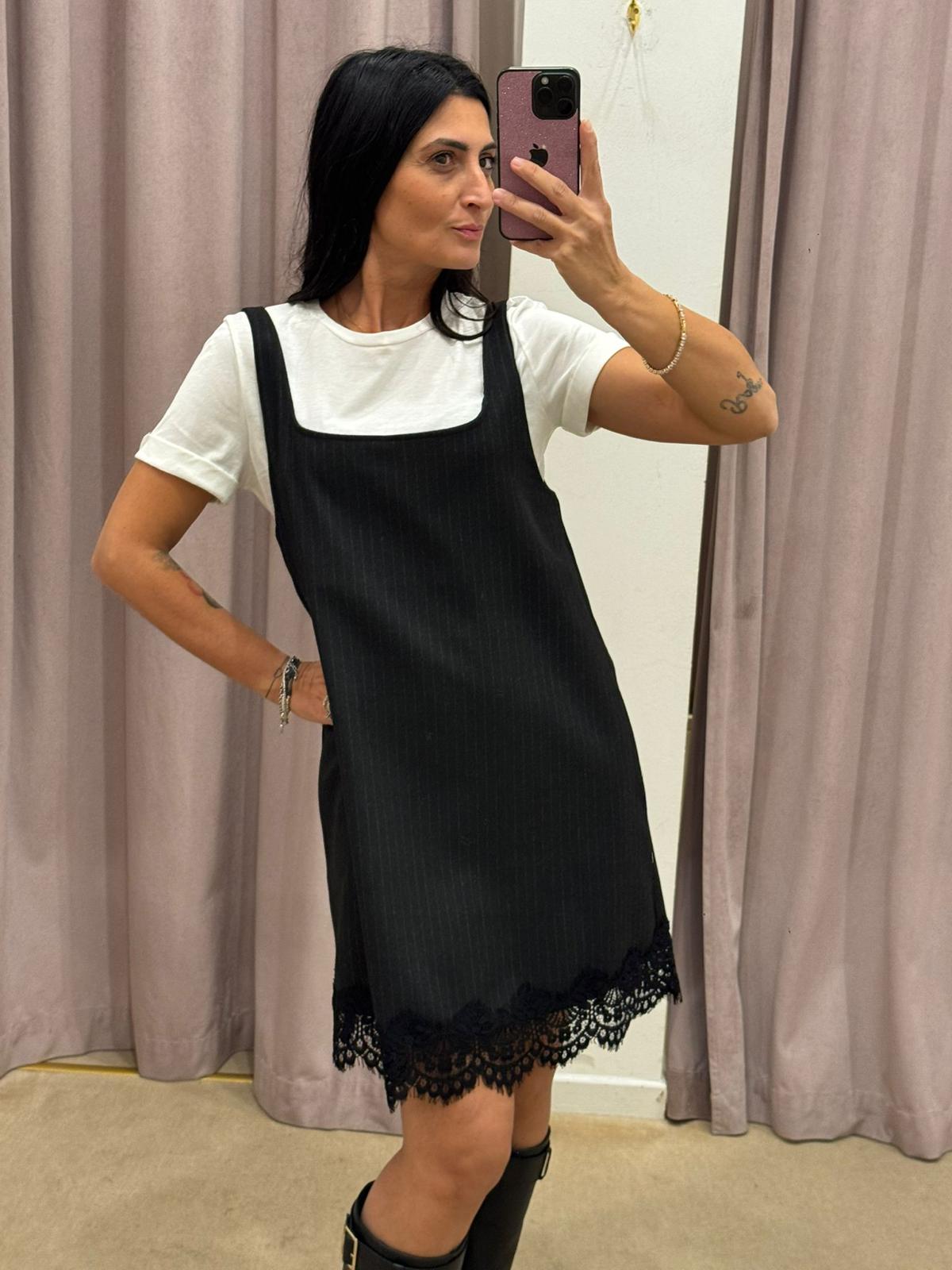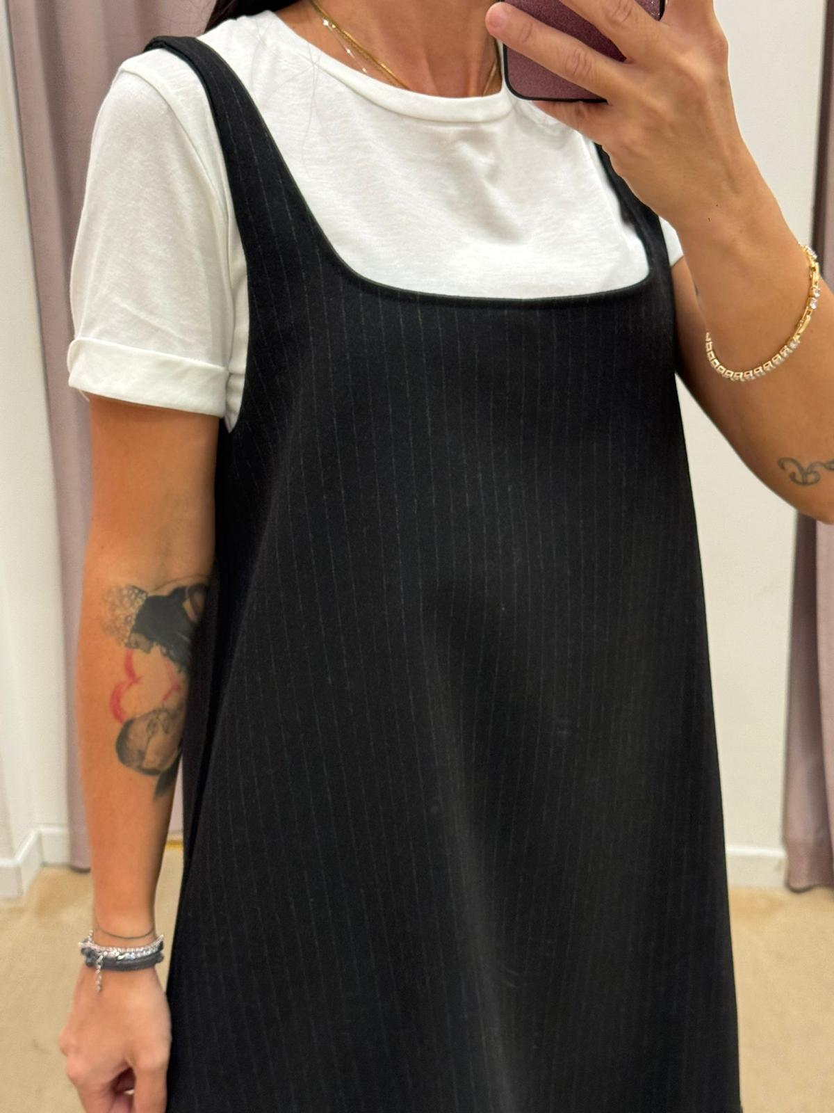 BLACK DRESS WITH TENSION T-SHIRT IN