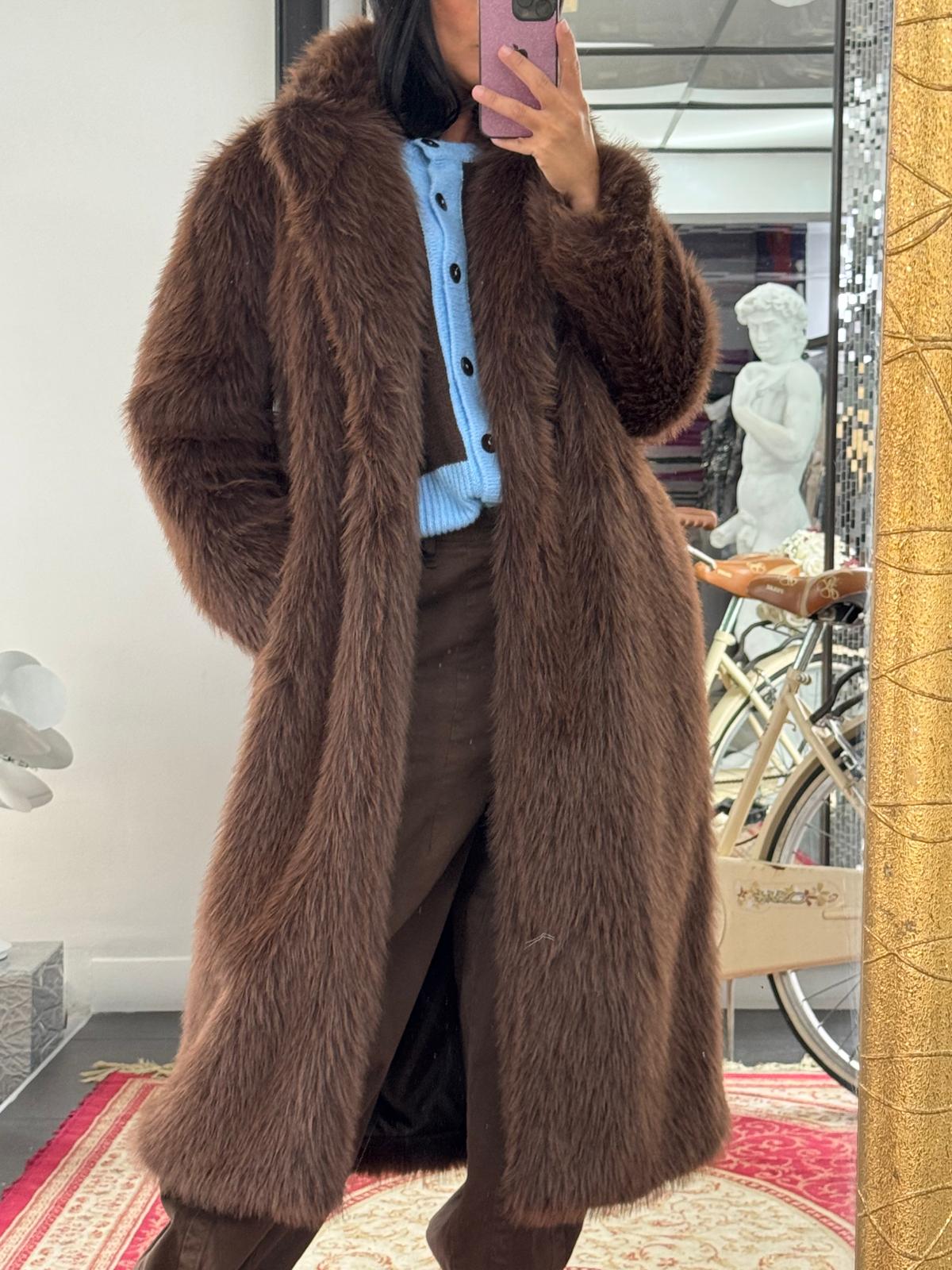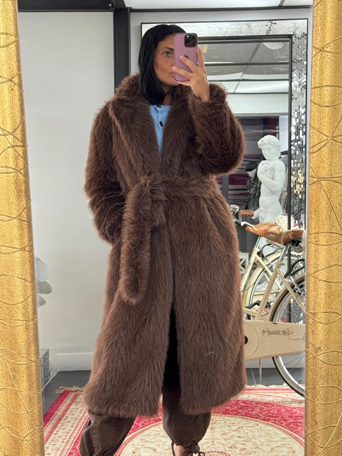 • Details: wide lapels, feminine line with belt that marks the waist.