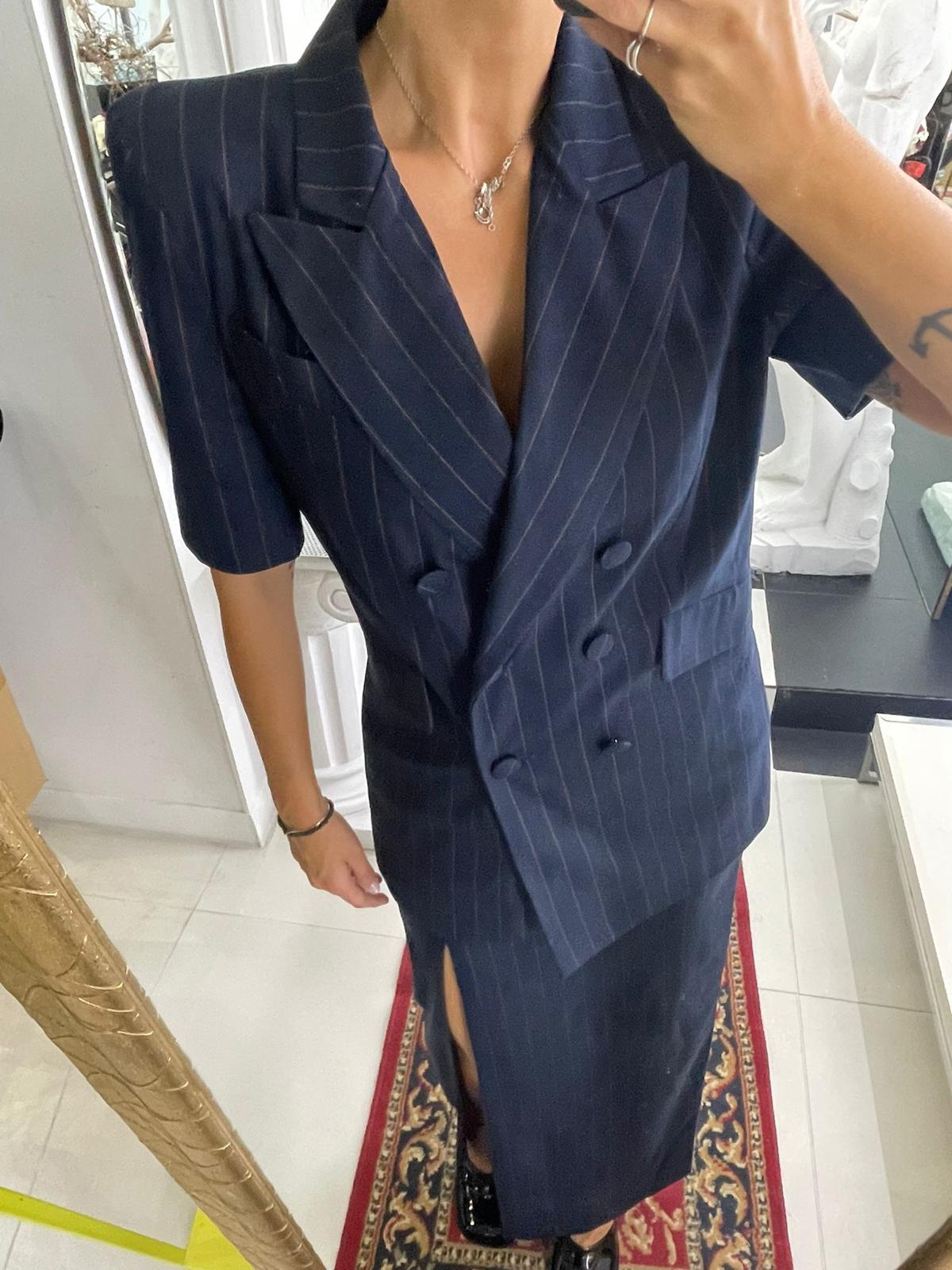 ACTUALEE DARK BLUE PINSTRIPE JACKET