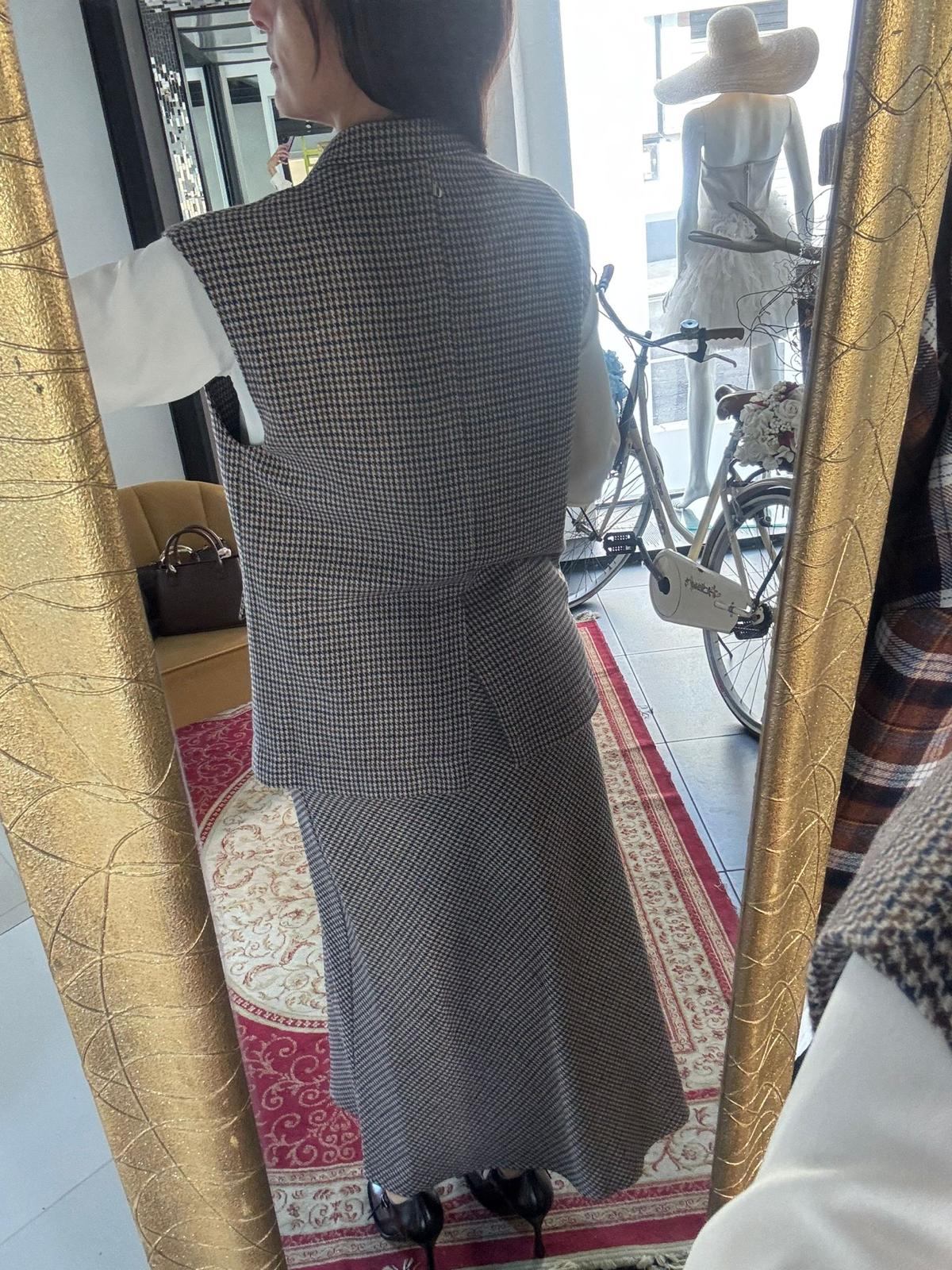 • Pattern: micro houndstooth in shades of brown and grey.