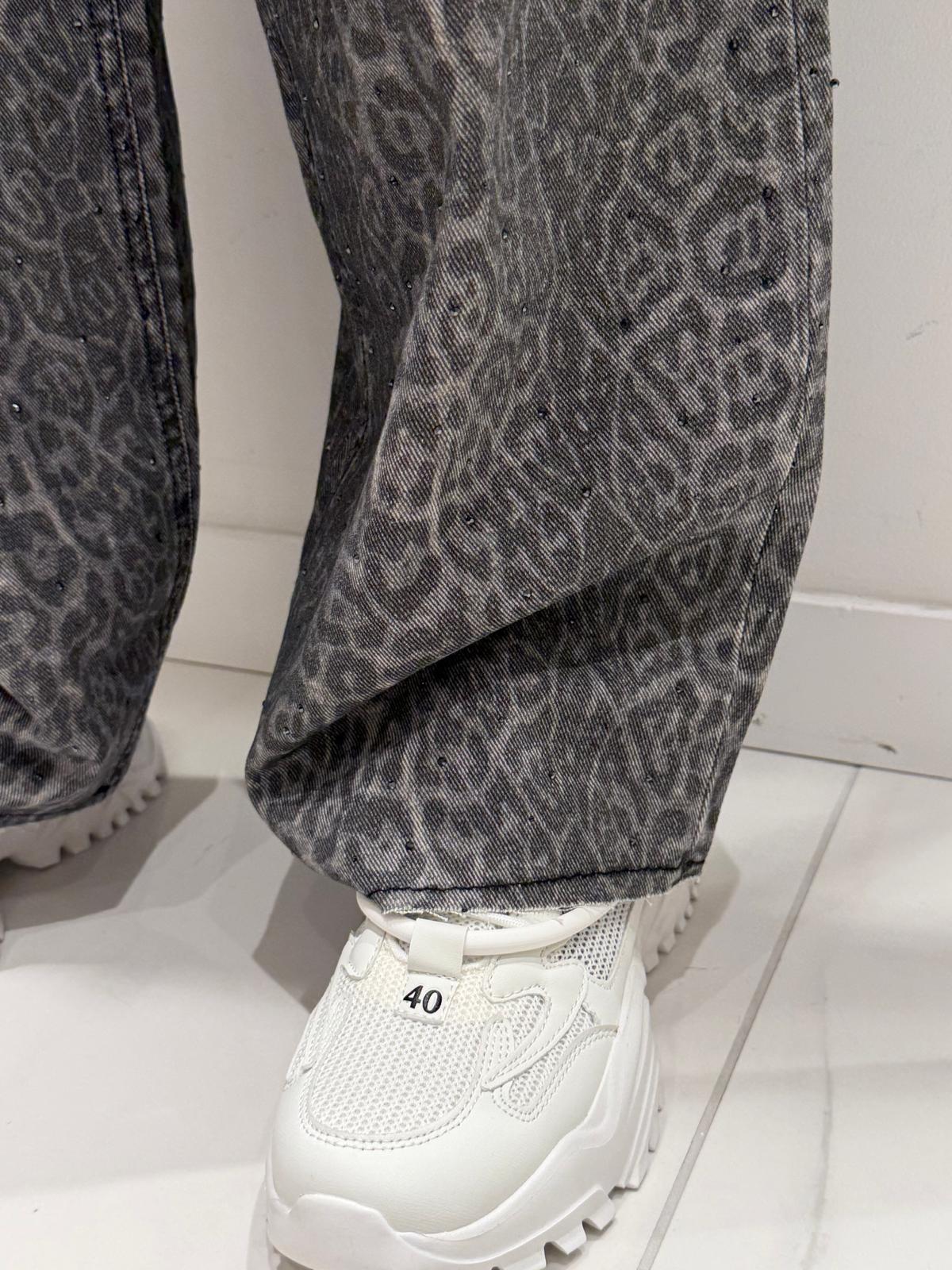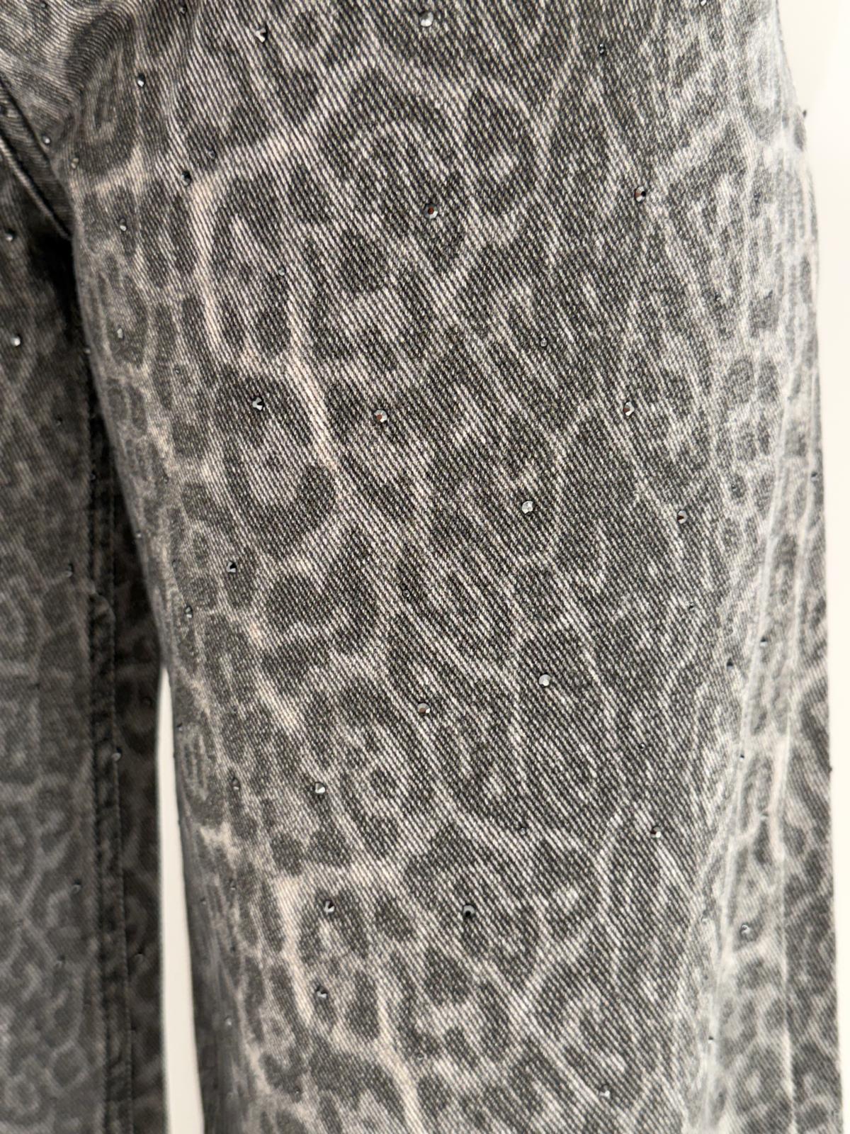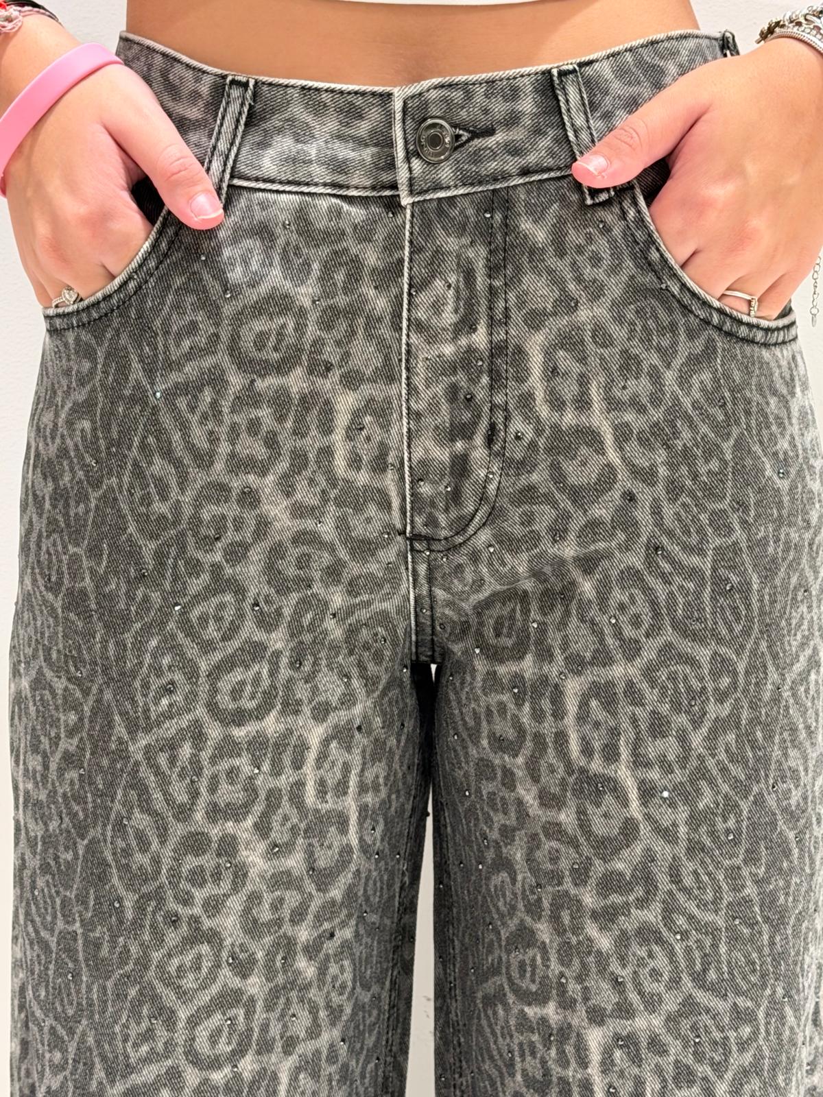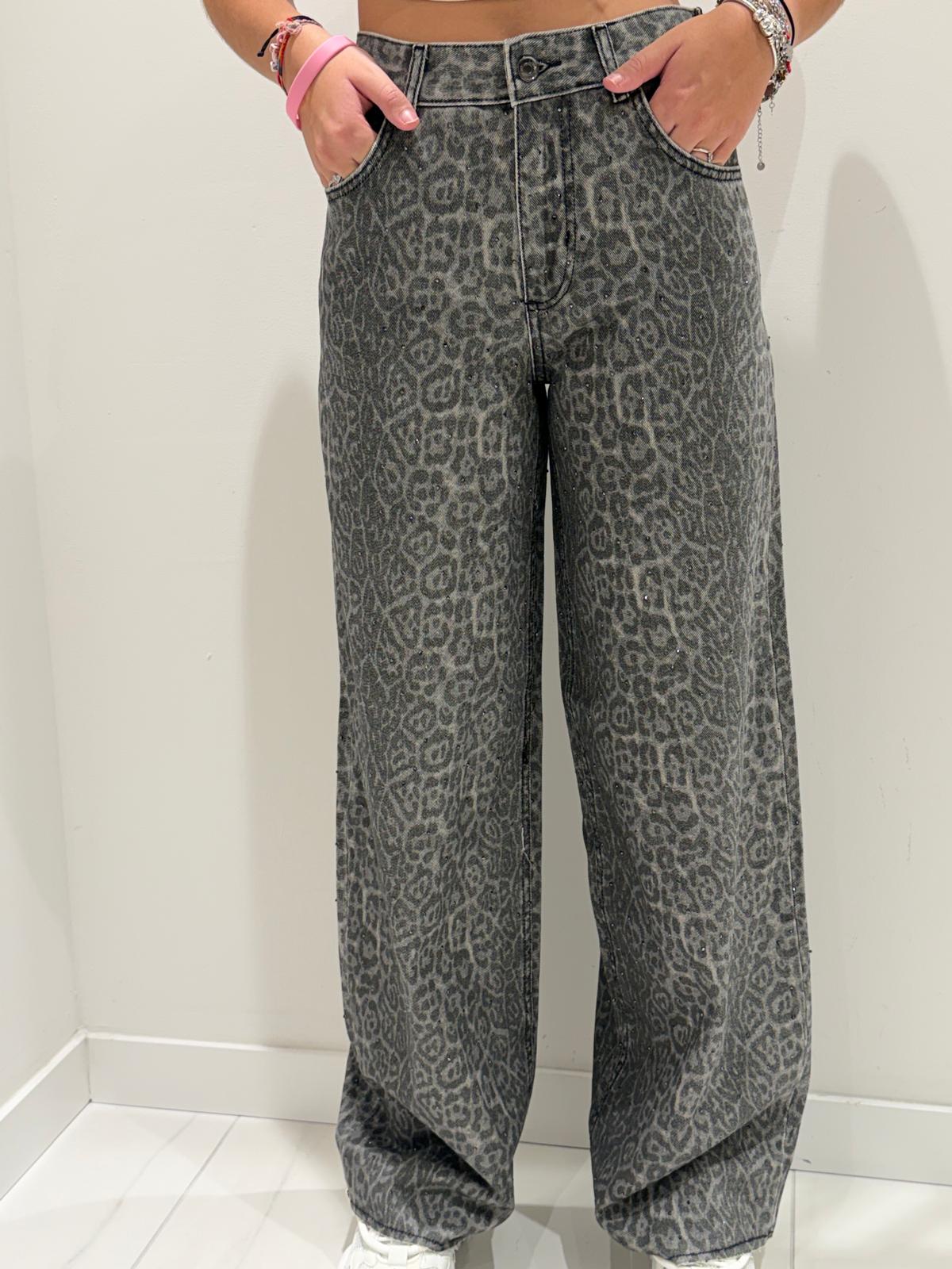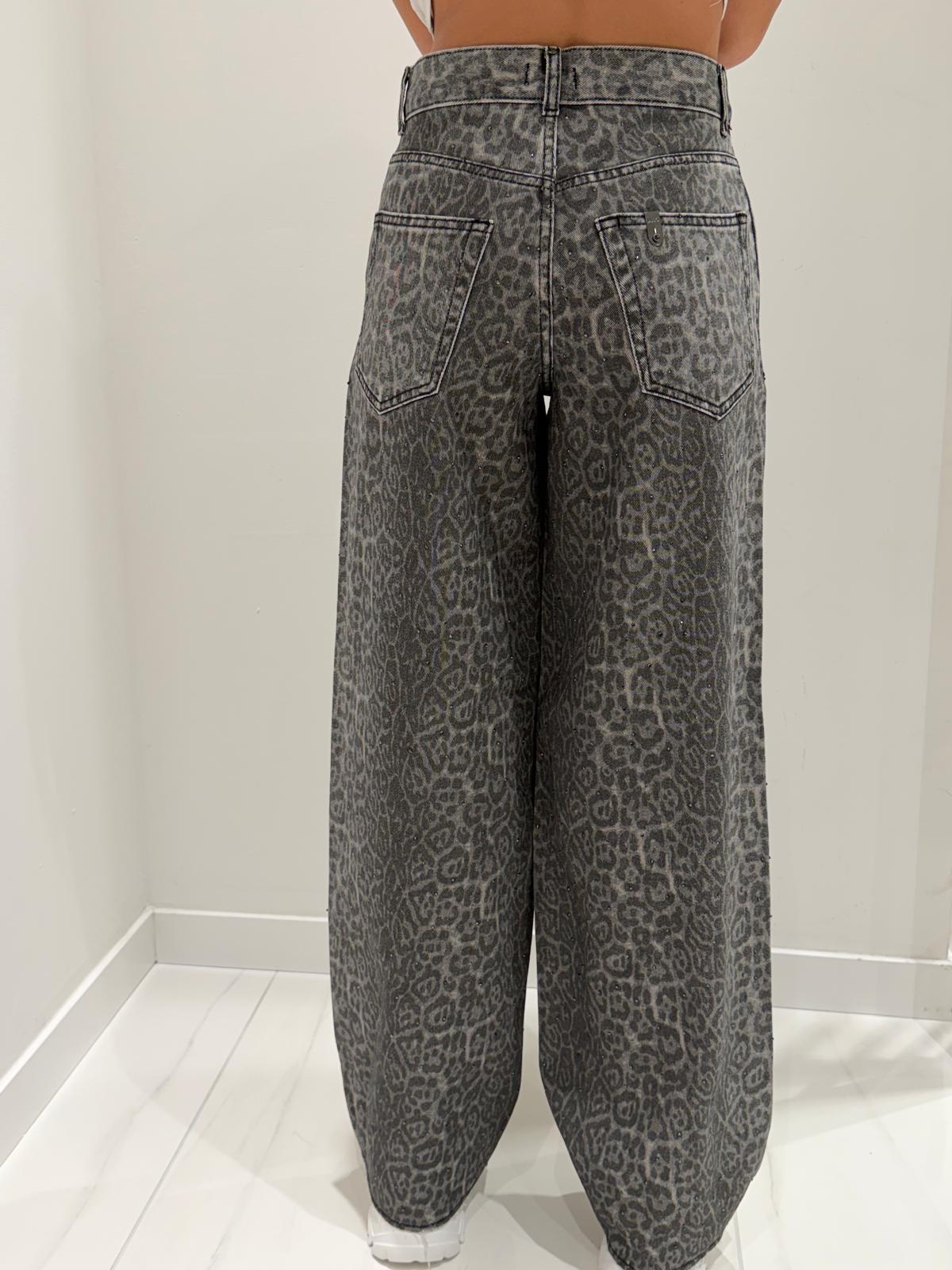 Charcoal grey jeans with leopard print