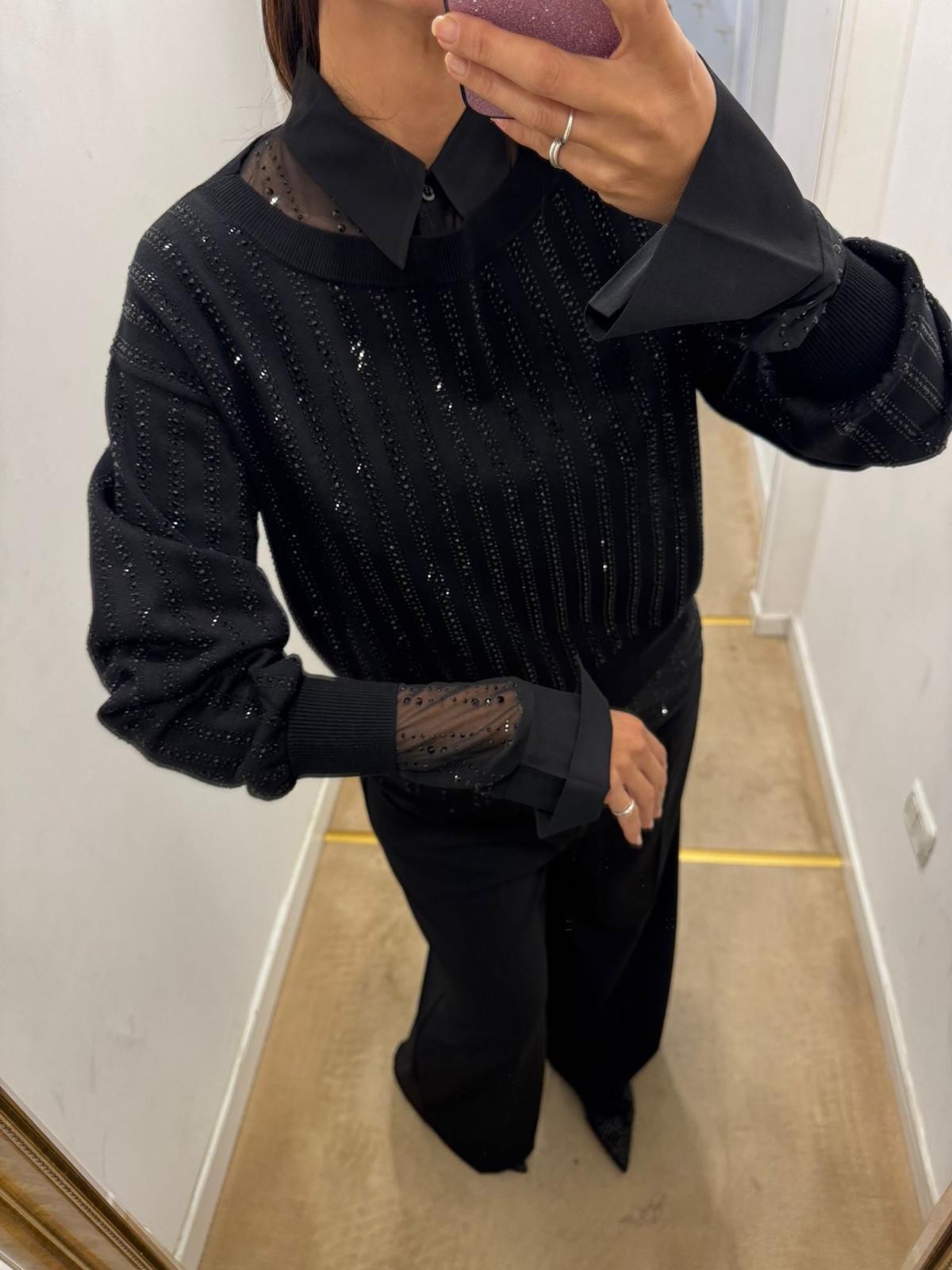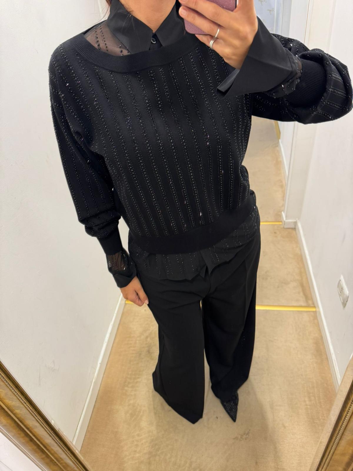 LIUJO BLACK SWEATER WITH RHINESTONE