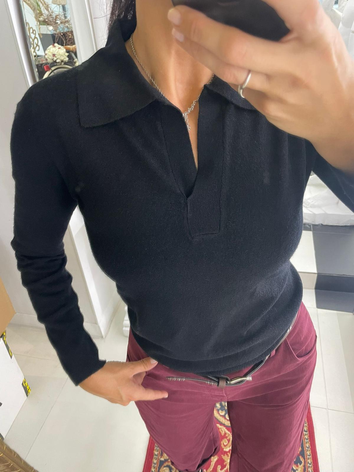 • Details: polo collar, V-neck