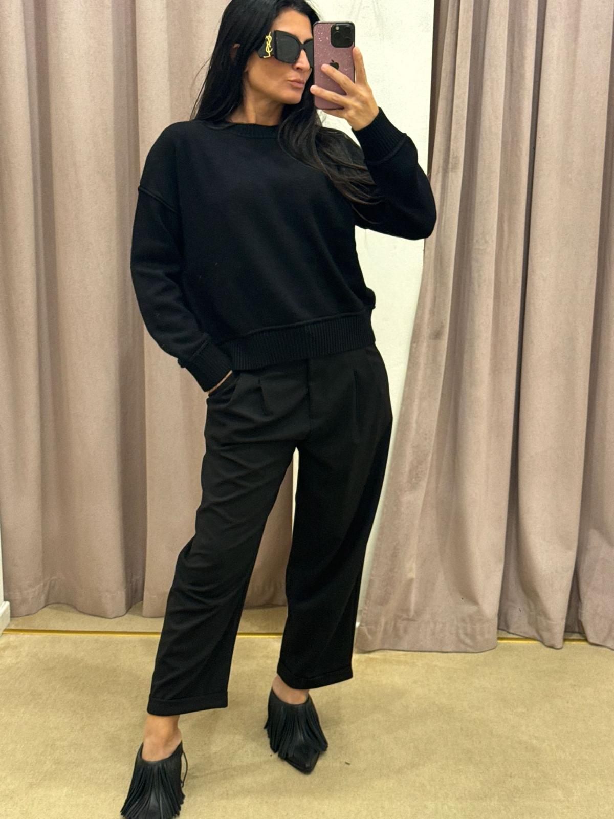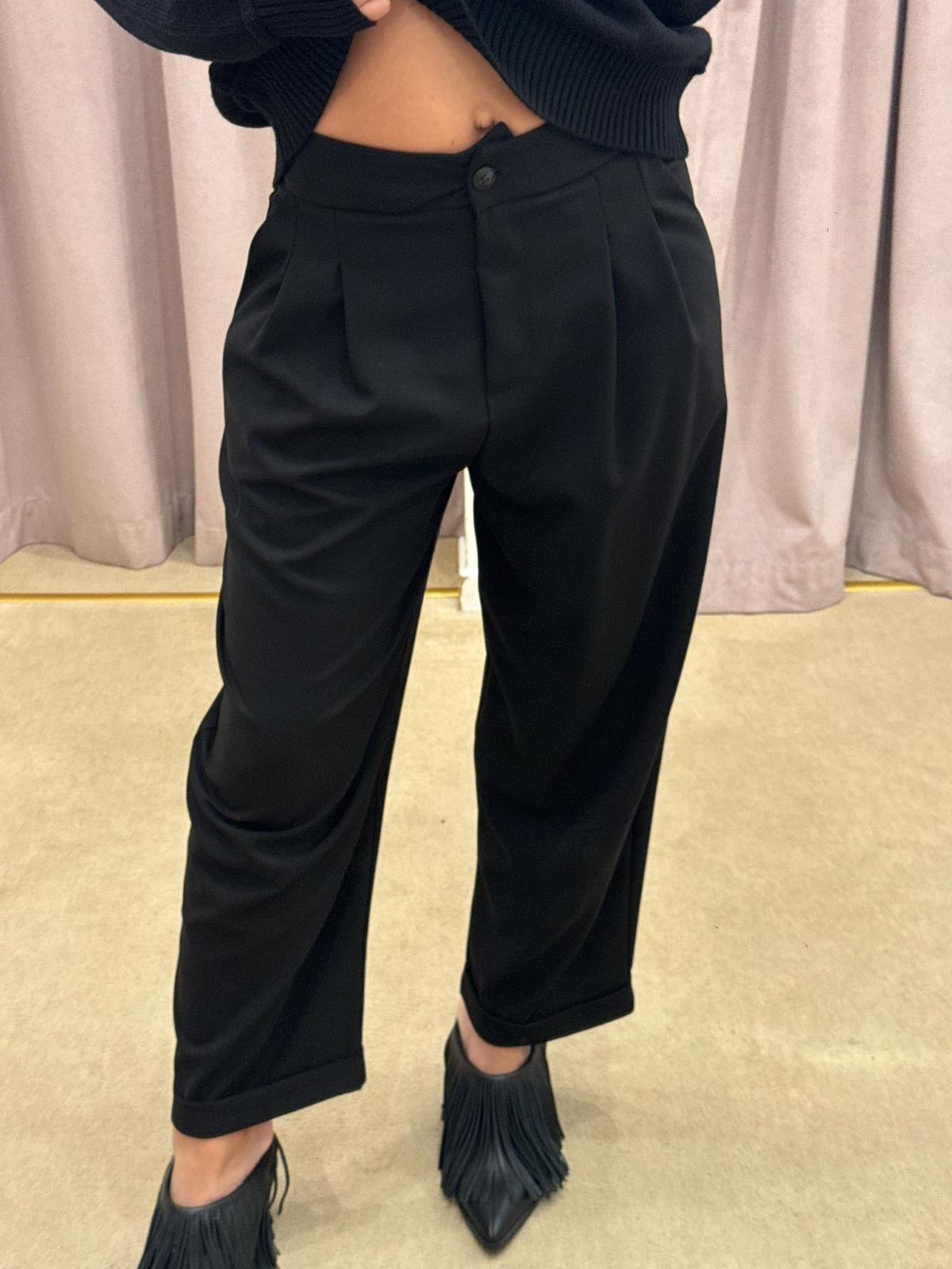 BLACK HIGH WAISTED TROUSERS WITH TENSION PLEATS IN