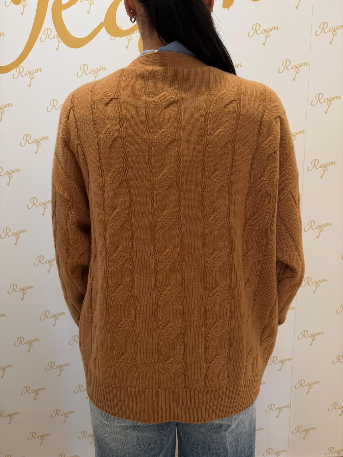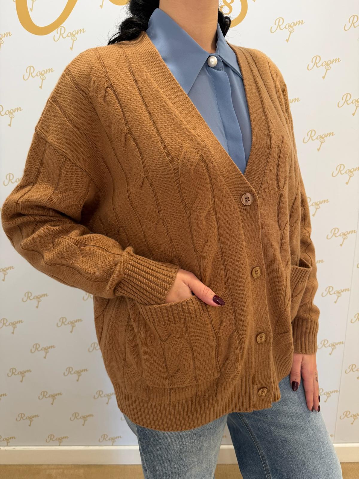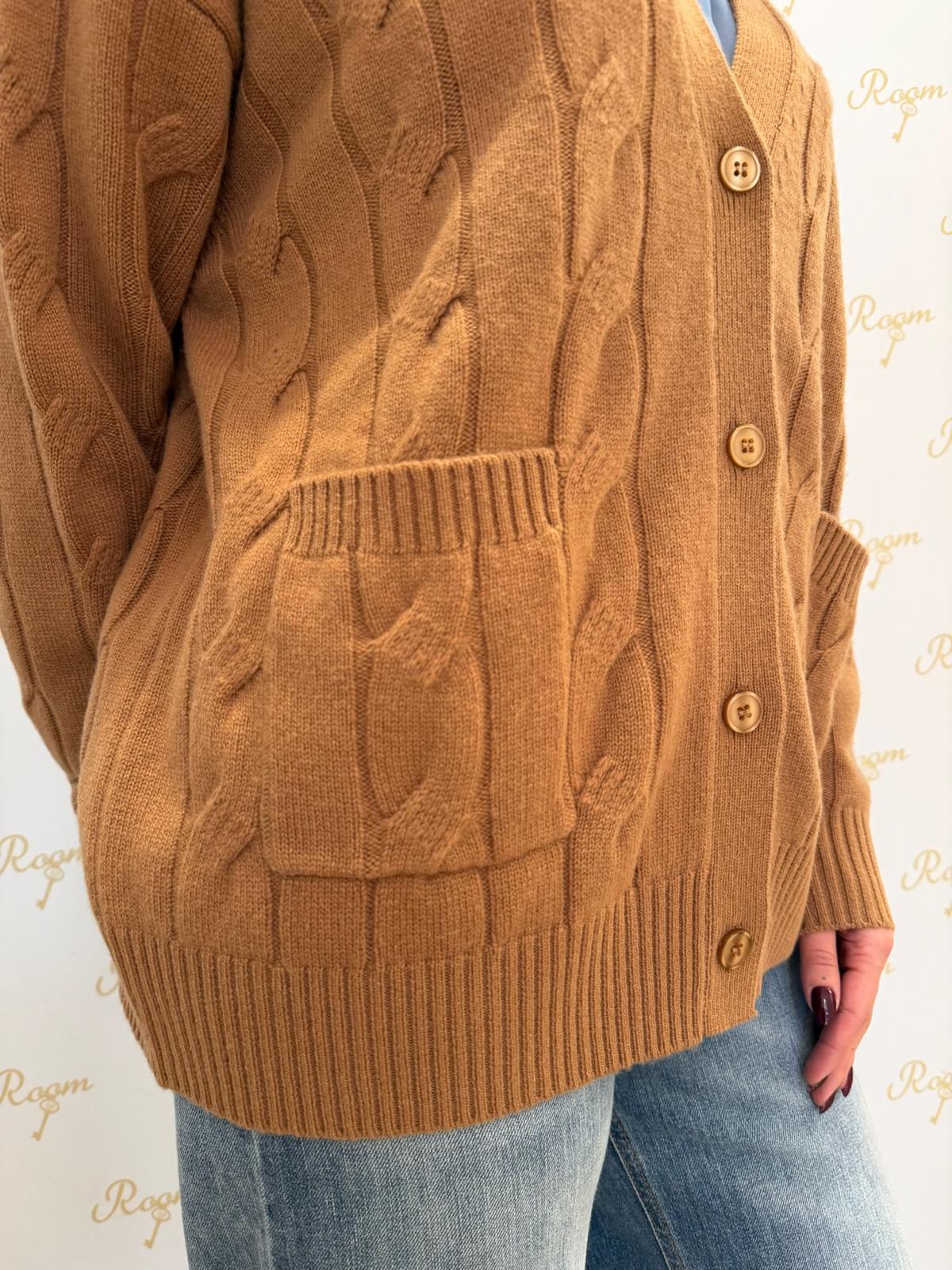CARDIGAN CAMEL IN LANA TENSIONE IN