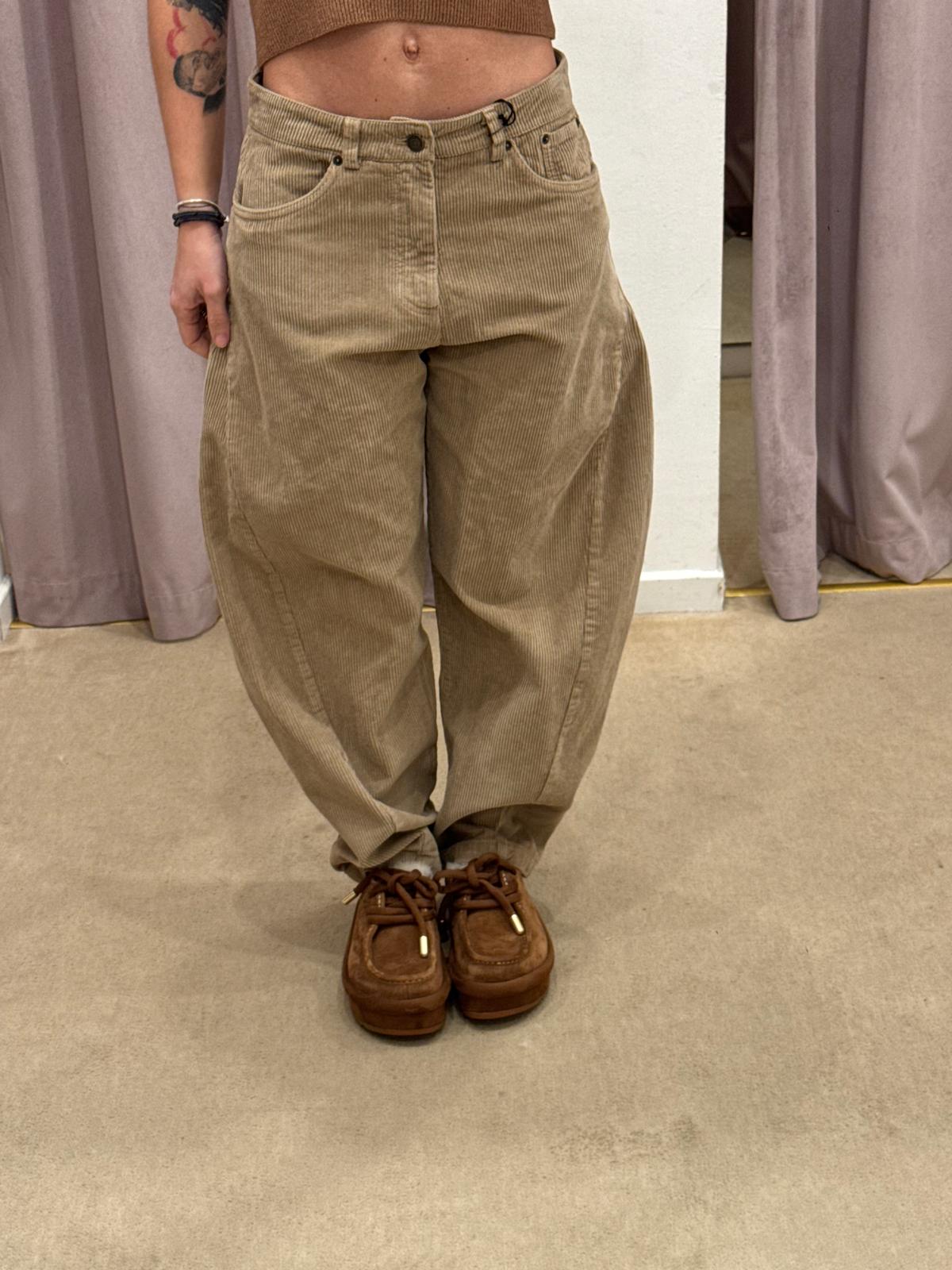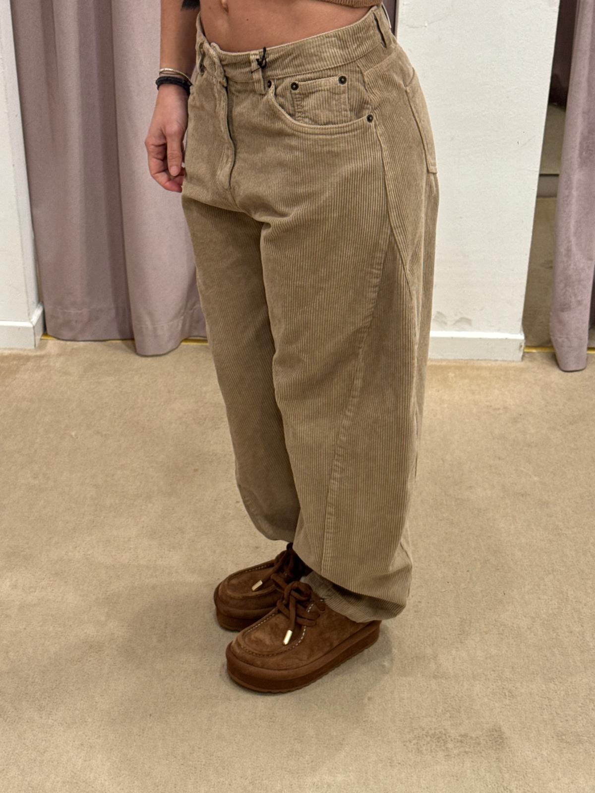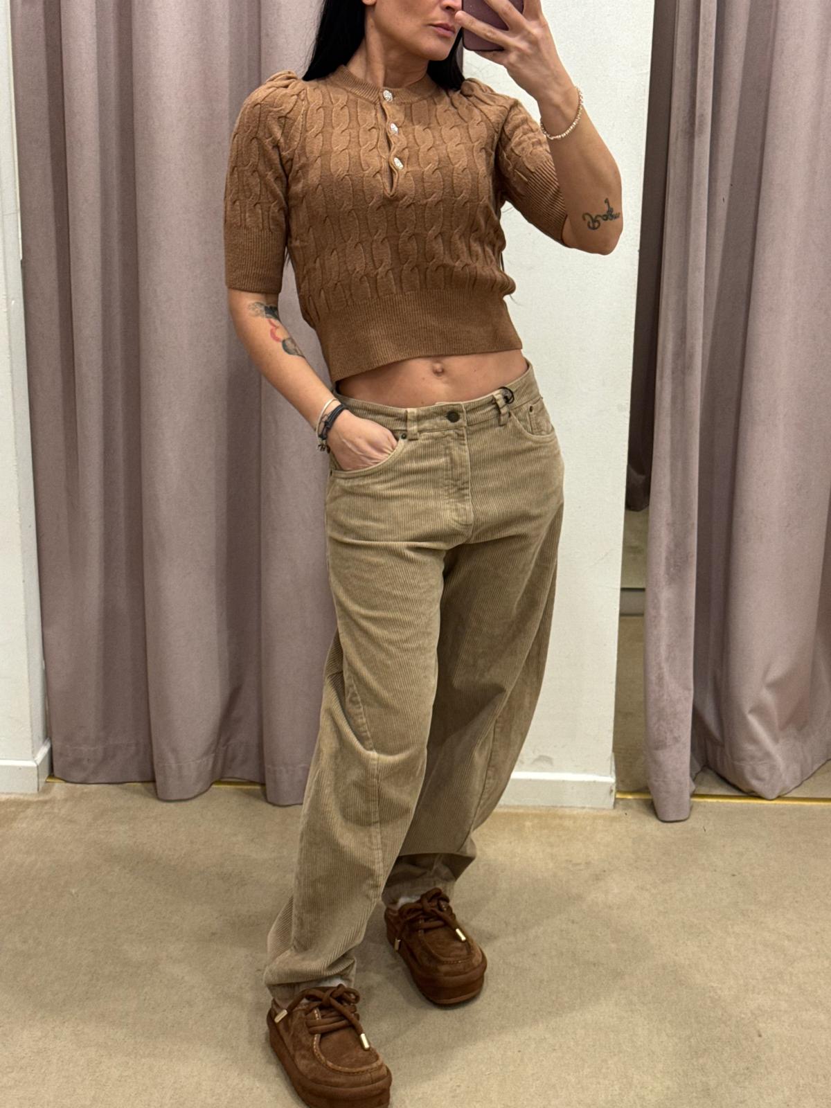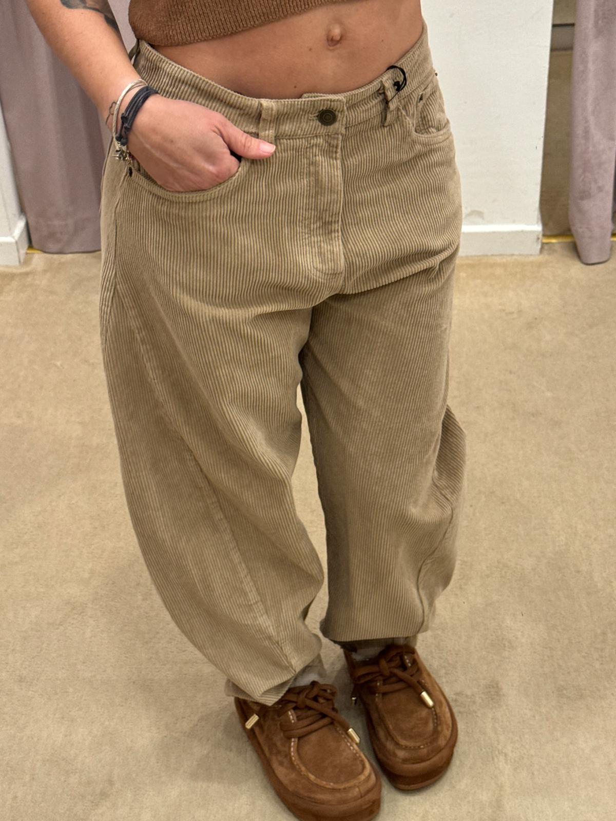 PANTALONE CAMMELLO A GAMBA AMPIA TENSIONE IN