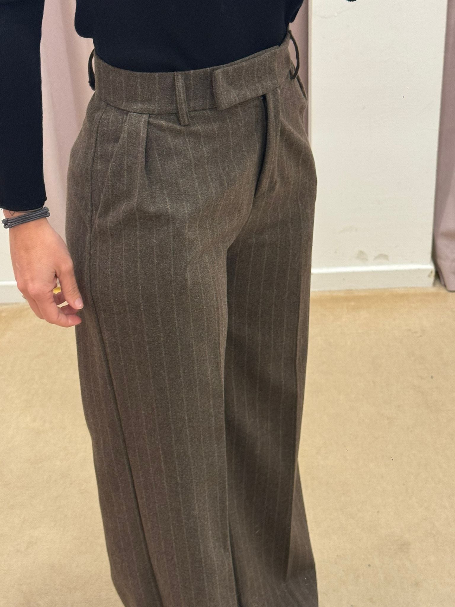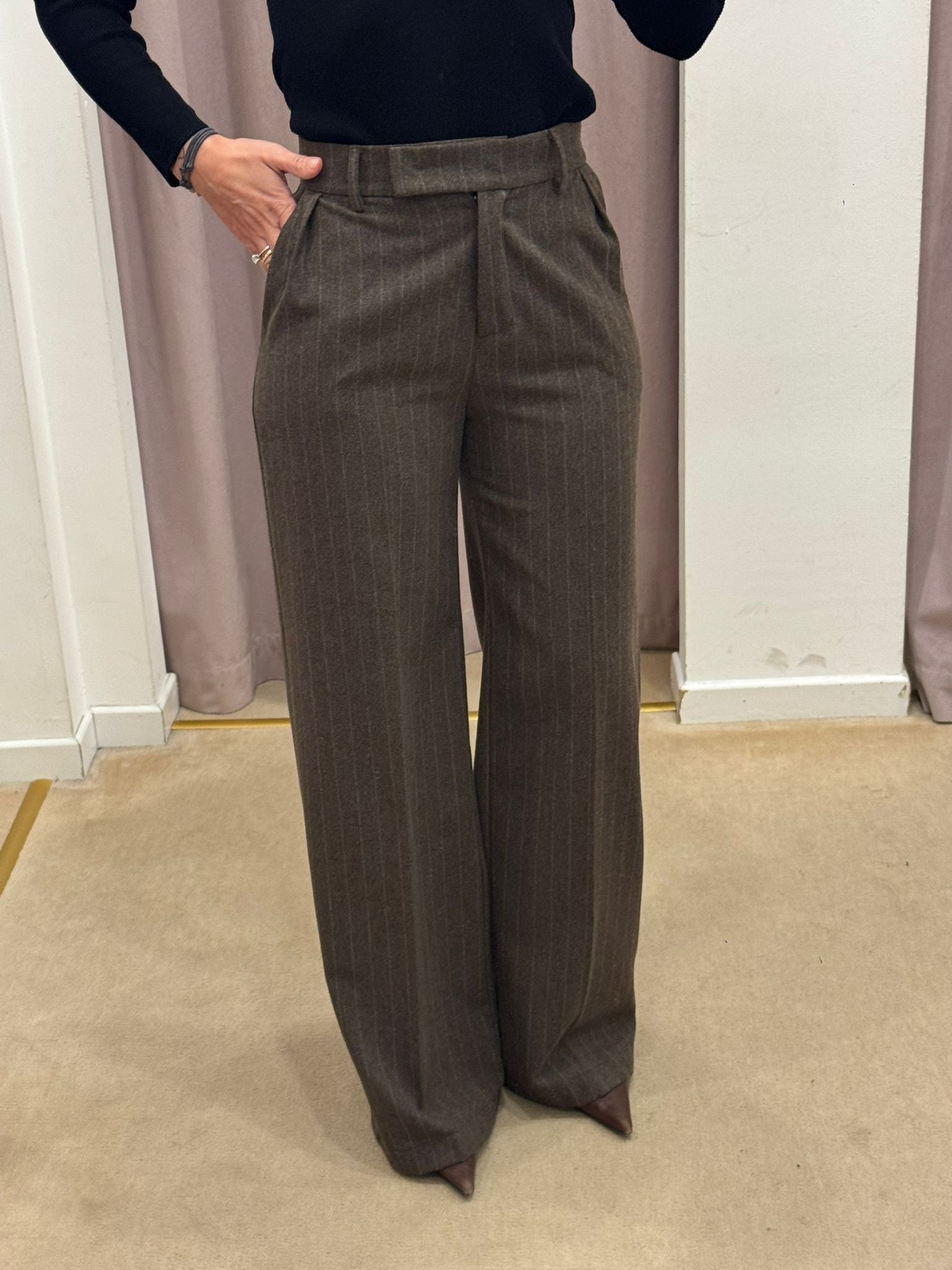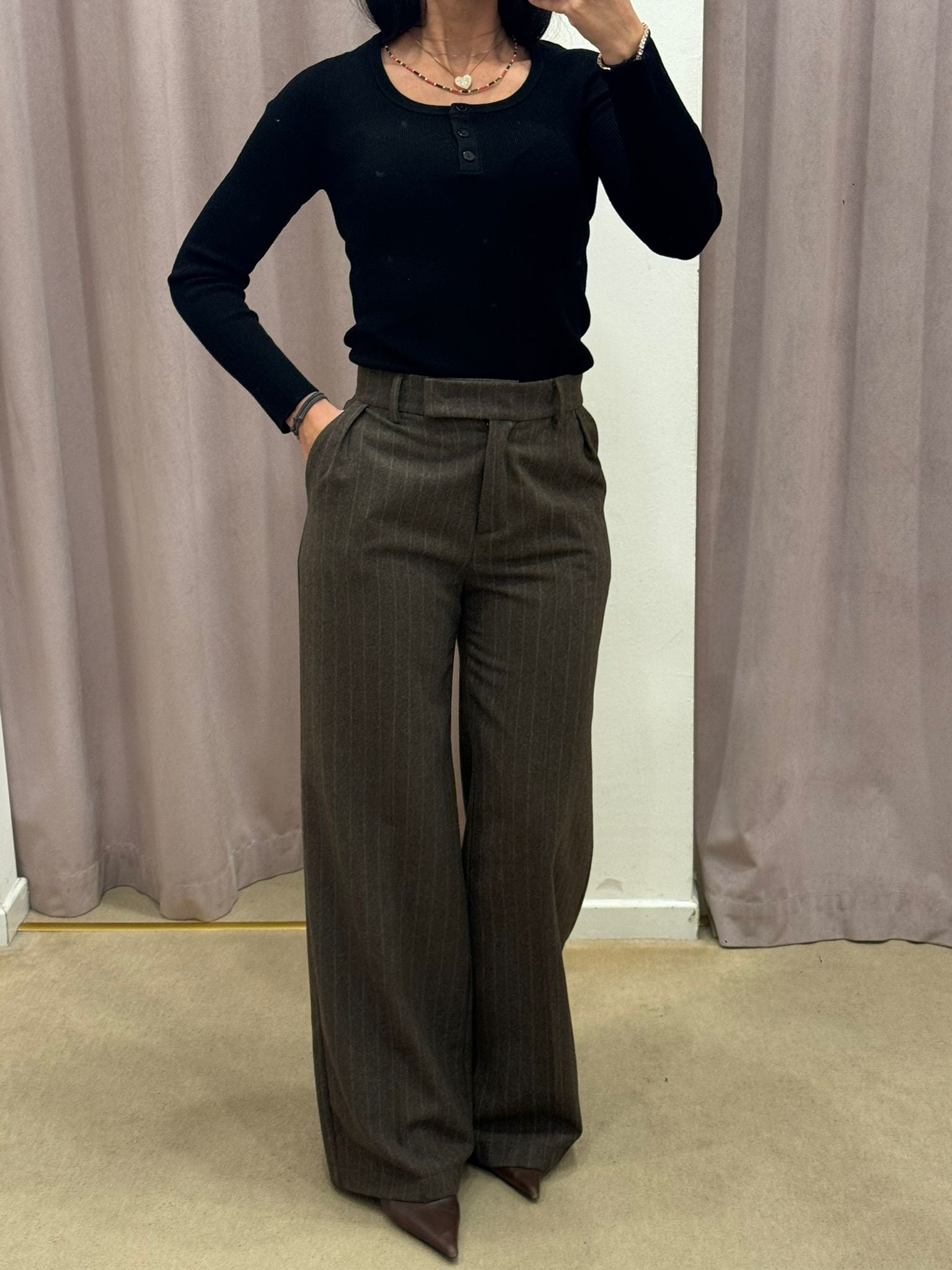 • Tessuto: Tessuto in fantasia gessata marrone/tortora.