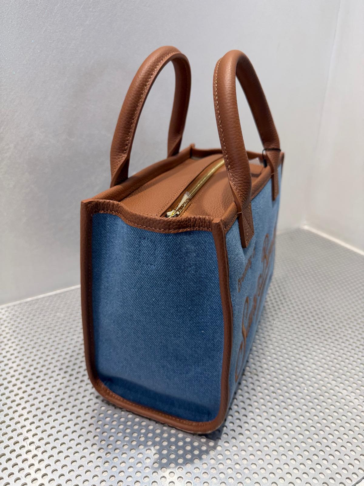 Borsa in tessuto e pelle. Tracolla removibile.
