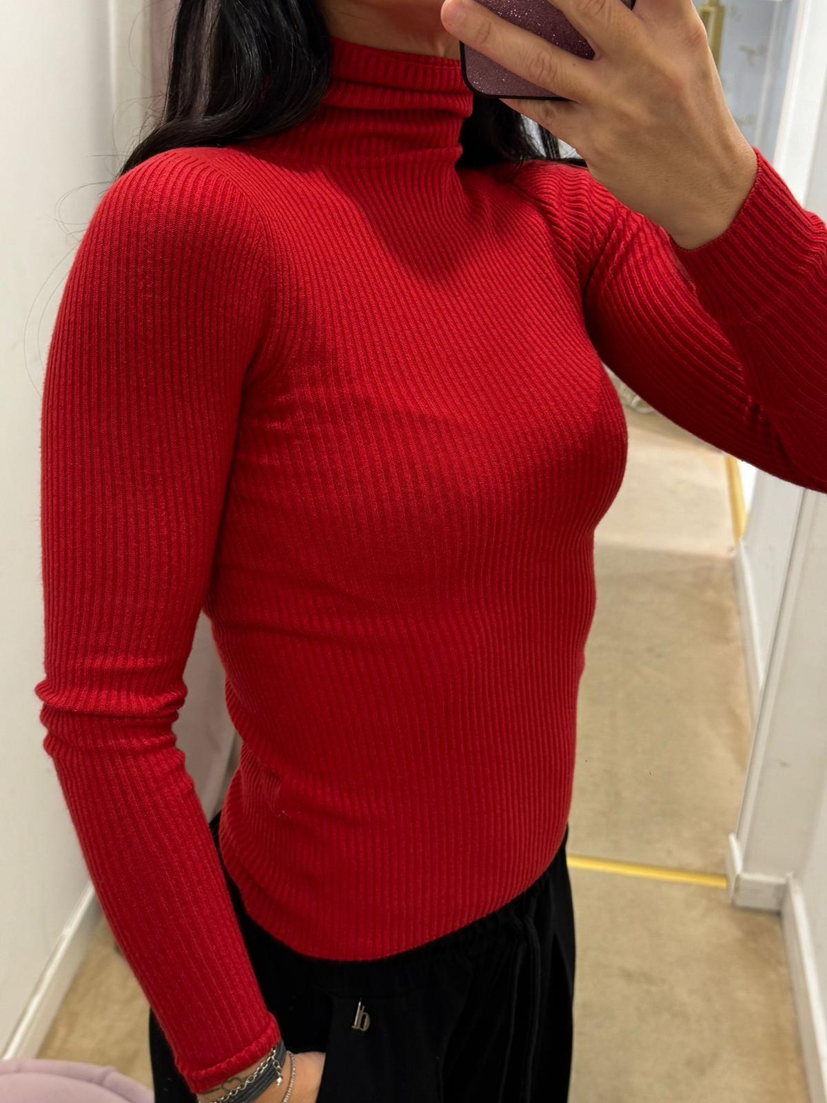 MAGLIA DOLCEVITA A COSTONE ROSSO TENSIONE IN